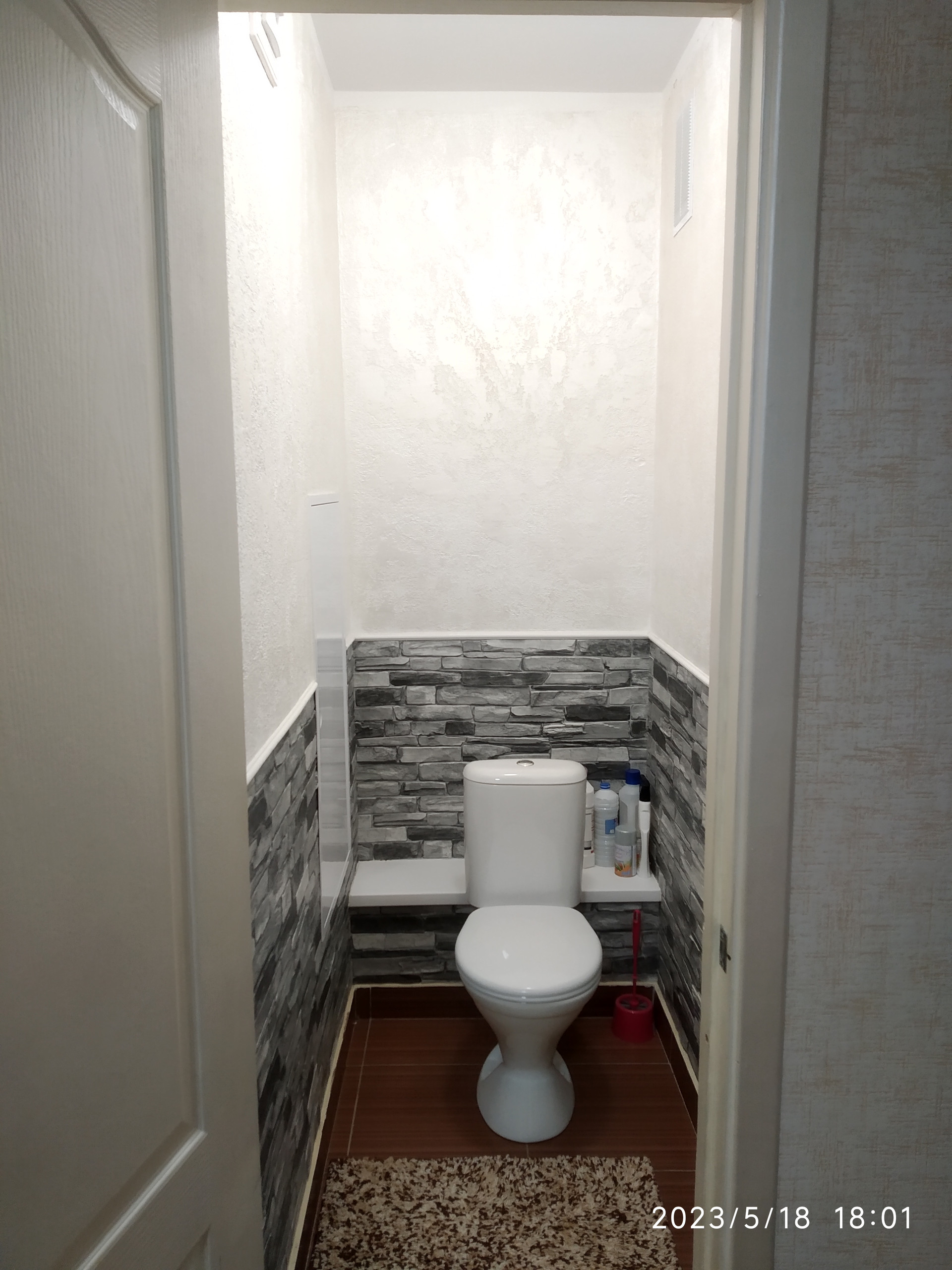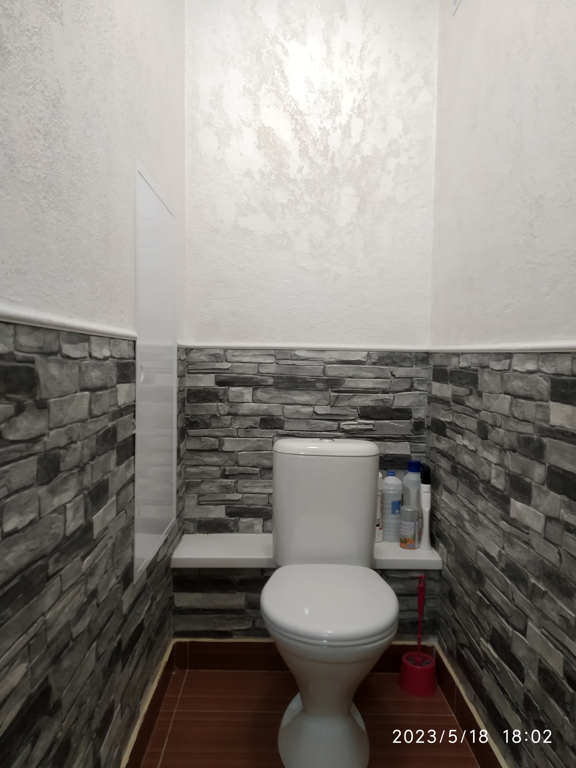 -В туалете стены отделаны декоративной штукатуркой.