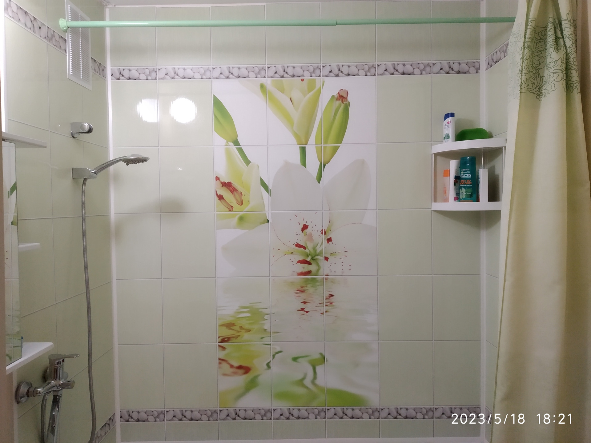 -Ванная комната частично отделана пластиковыми панелями(душевая зона)