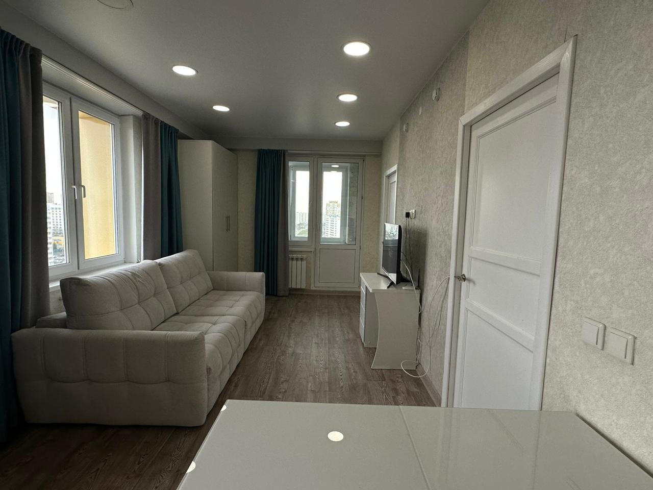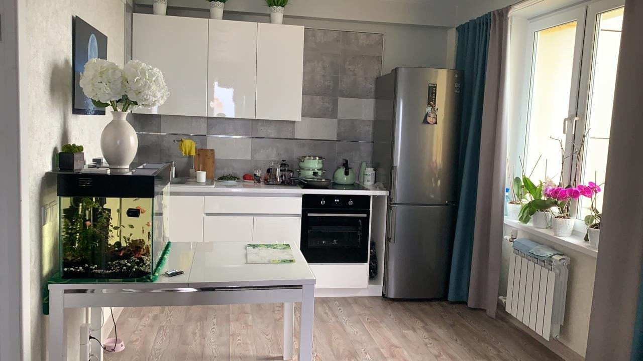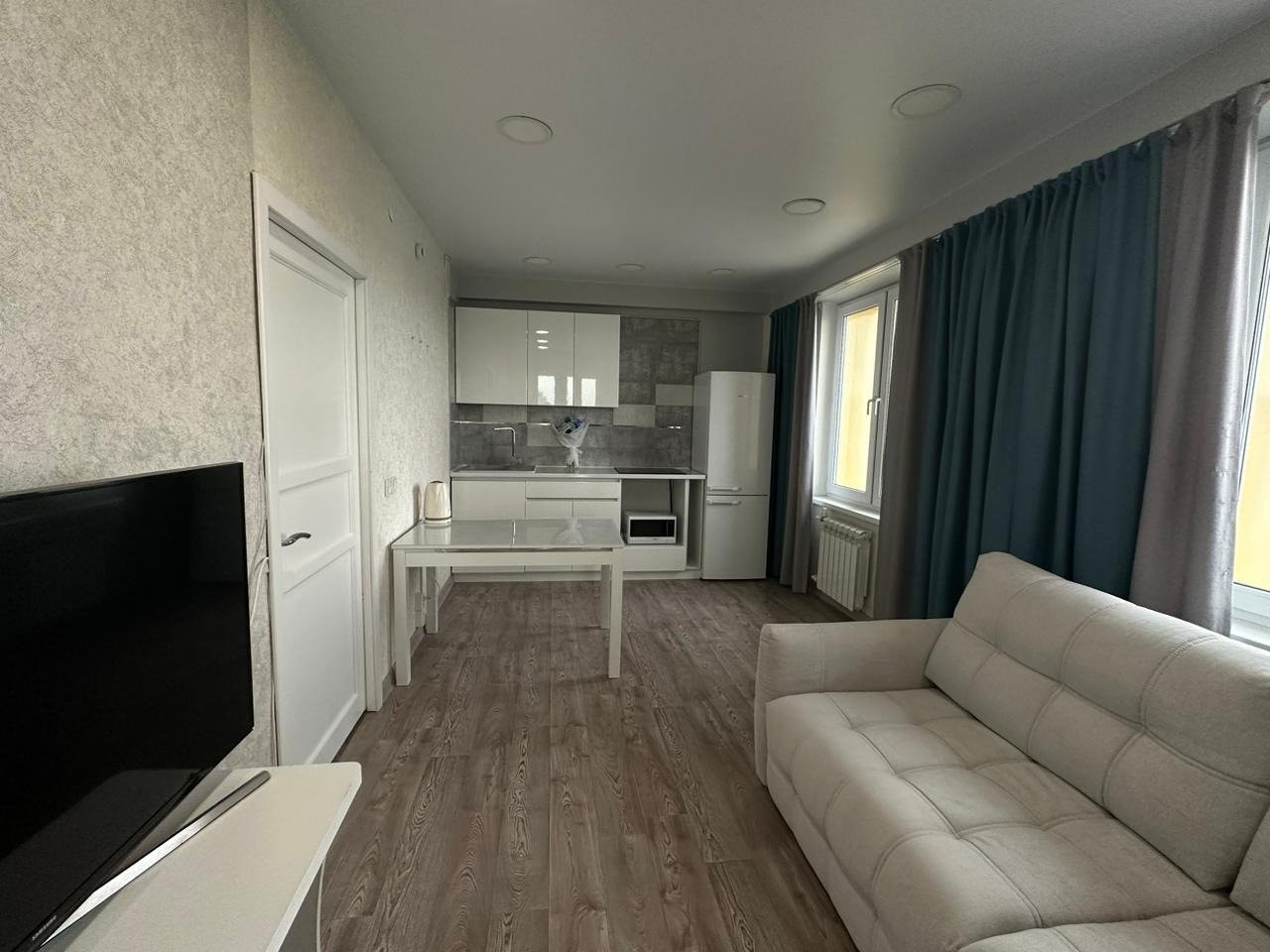 Очень удобная планировка 1+1, где есть отдельная комната и просторный зал соединенный с кухней.