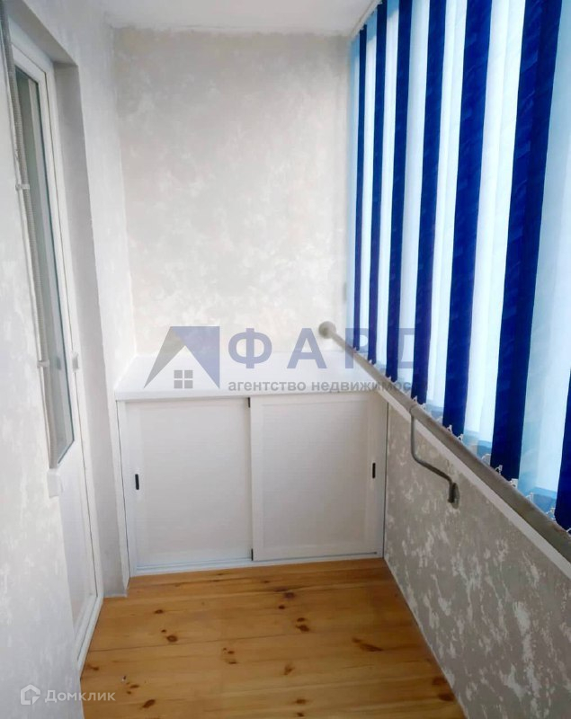 Застекленный балкон, смотрит во двор. Деревянный пол, утепленный минеральной ватой. с Двух сторон шкафы купе для хранениия