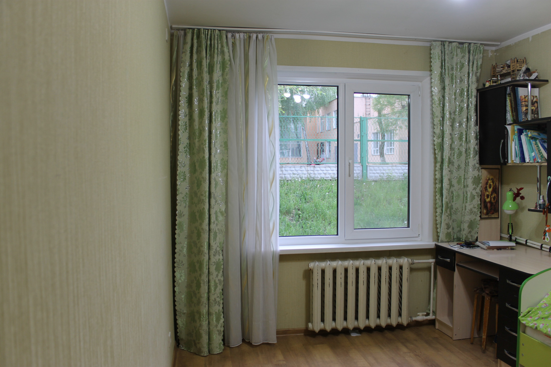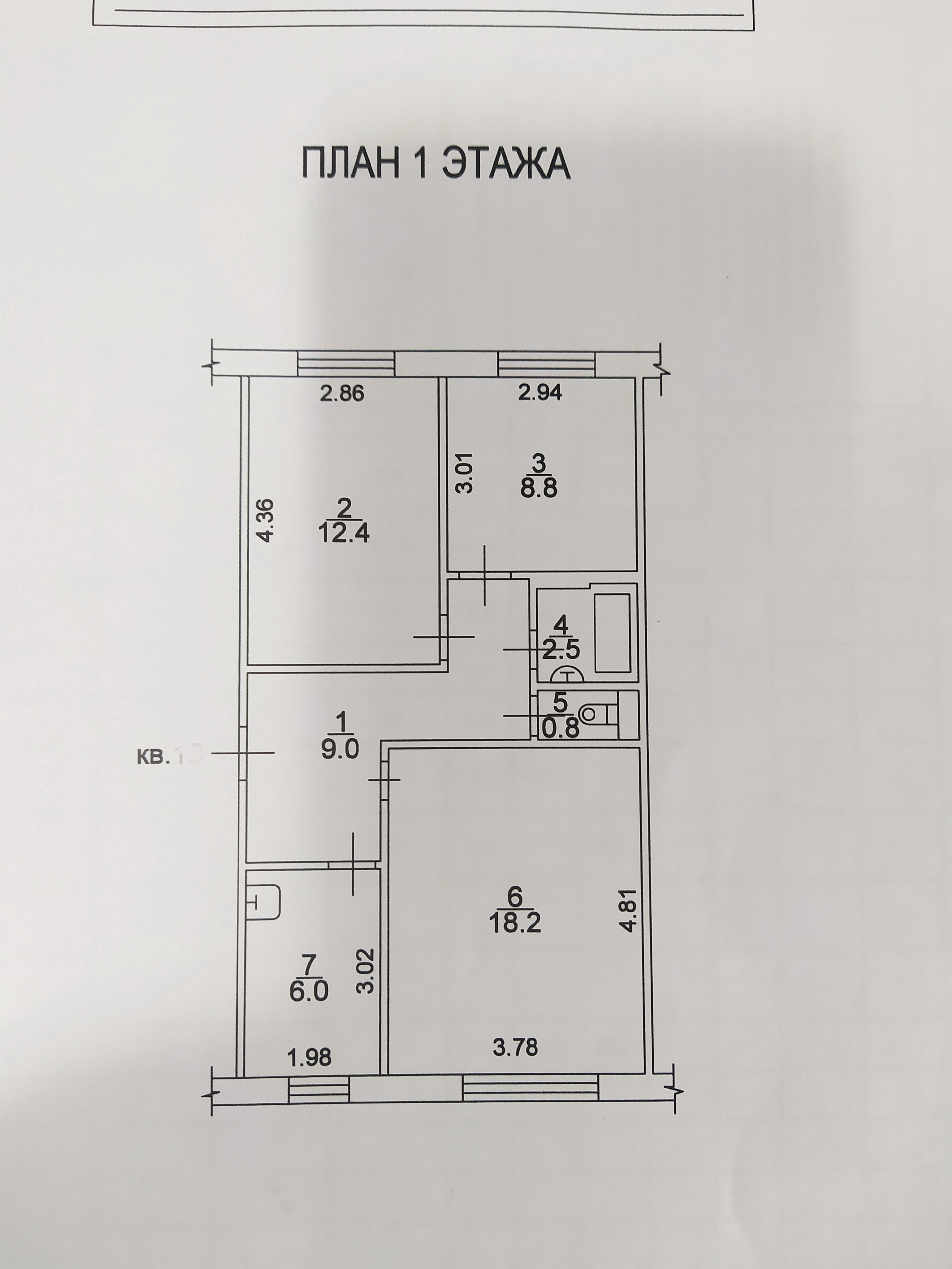 • Общая площадь квартиры – 57,7 кв.м., жилая – 39,4 кв.м. (комнаты раздельные – 18,3+8,8+12,4). Площадь кухни – 6 кв.м., большая прихожая - 9 кв.м. Балкона нет, поэтому зал и кухня после обеда буквально залиты солнечным светом, а до обеда солнце в двух спальнях (окна смотрят на газон и детский сад, пешеходной тропы под окнами нет). Уровень этажа довольно высокий, 2 метра от земли до нижней кромки окна.