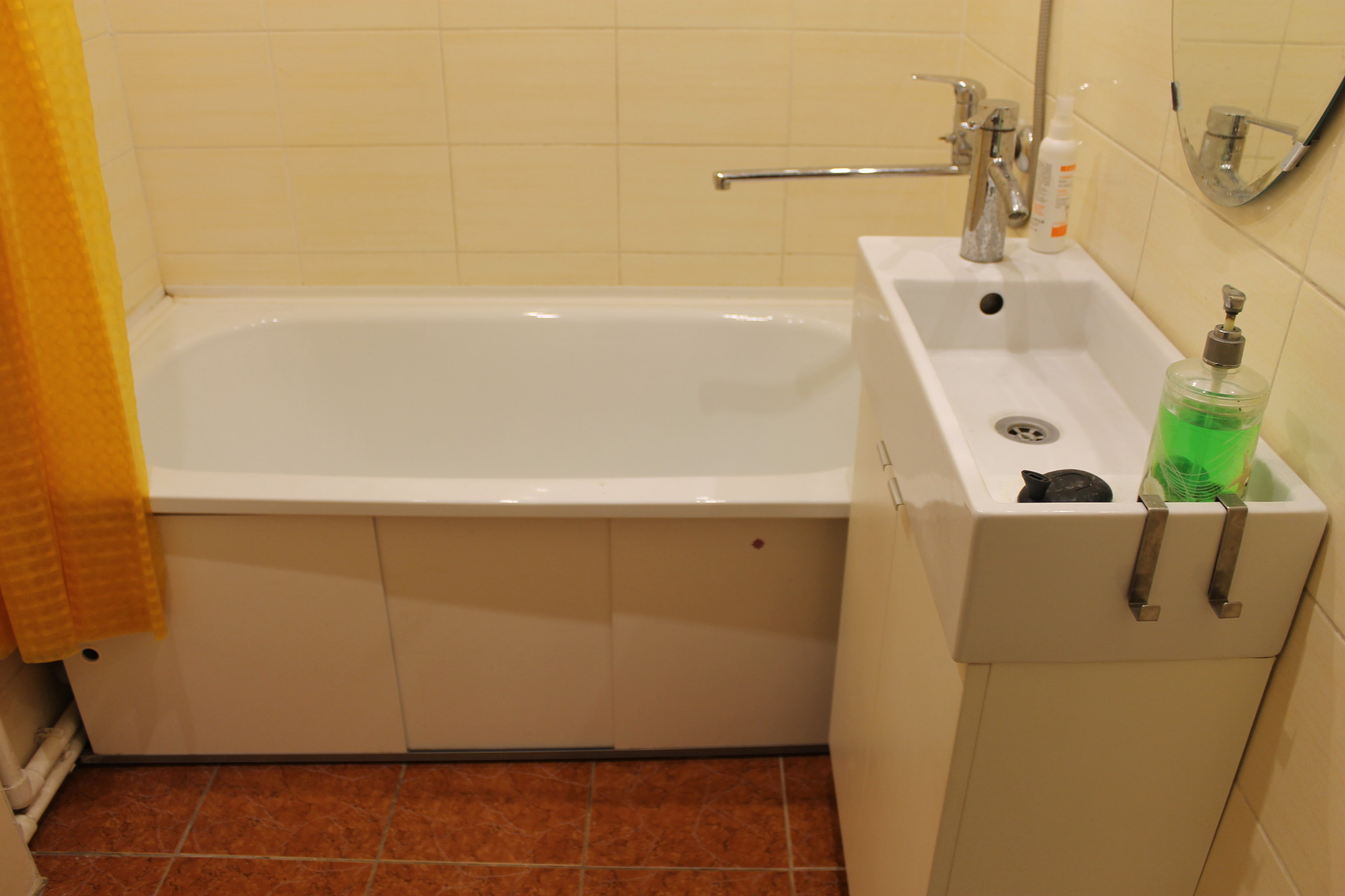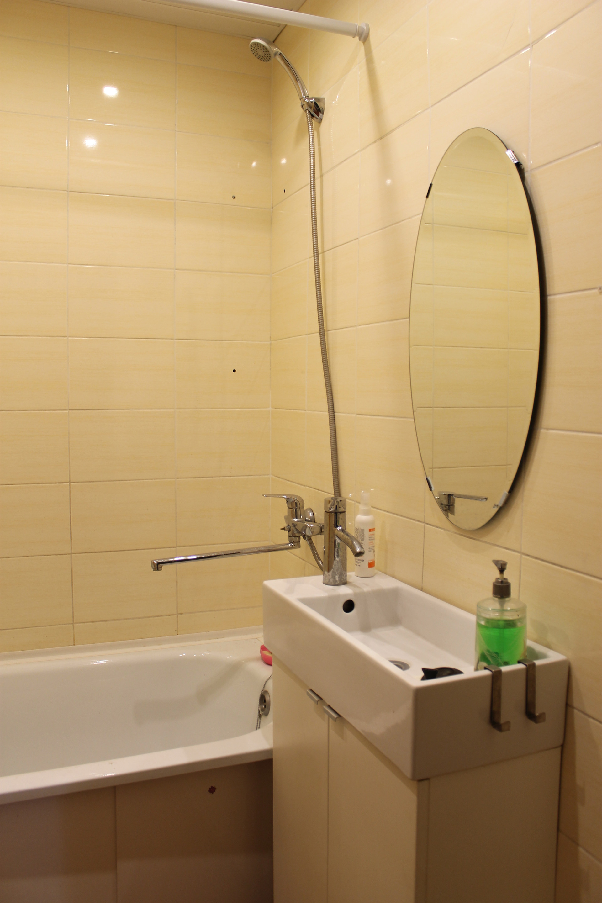 • Туалет и ванная раздельны, хороший кафель и сантехника, все трубы централизовано поменяны. Площадь сан/узла увеличена за счет передвижки стены в коридор (все узаконено), стало просторно, умещается стиральная машина в ванной комнате.