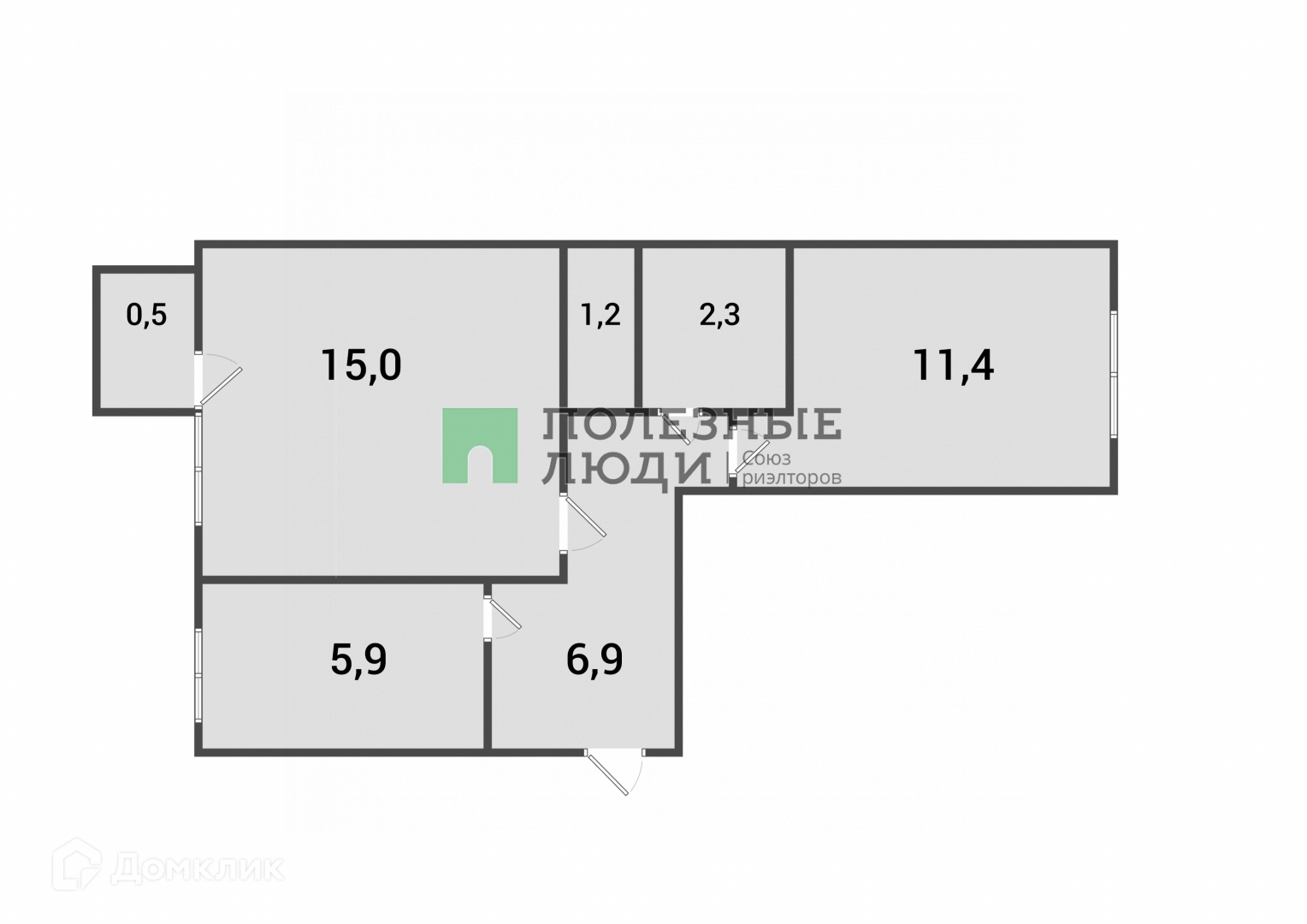 Жилая площадь 26.4 м2