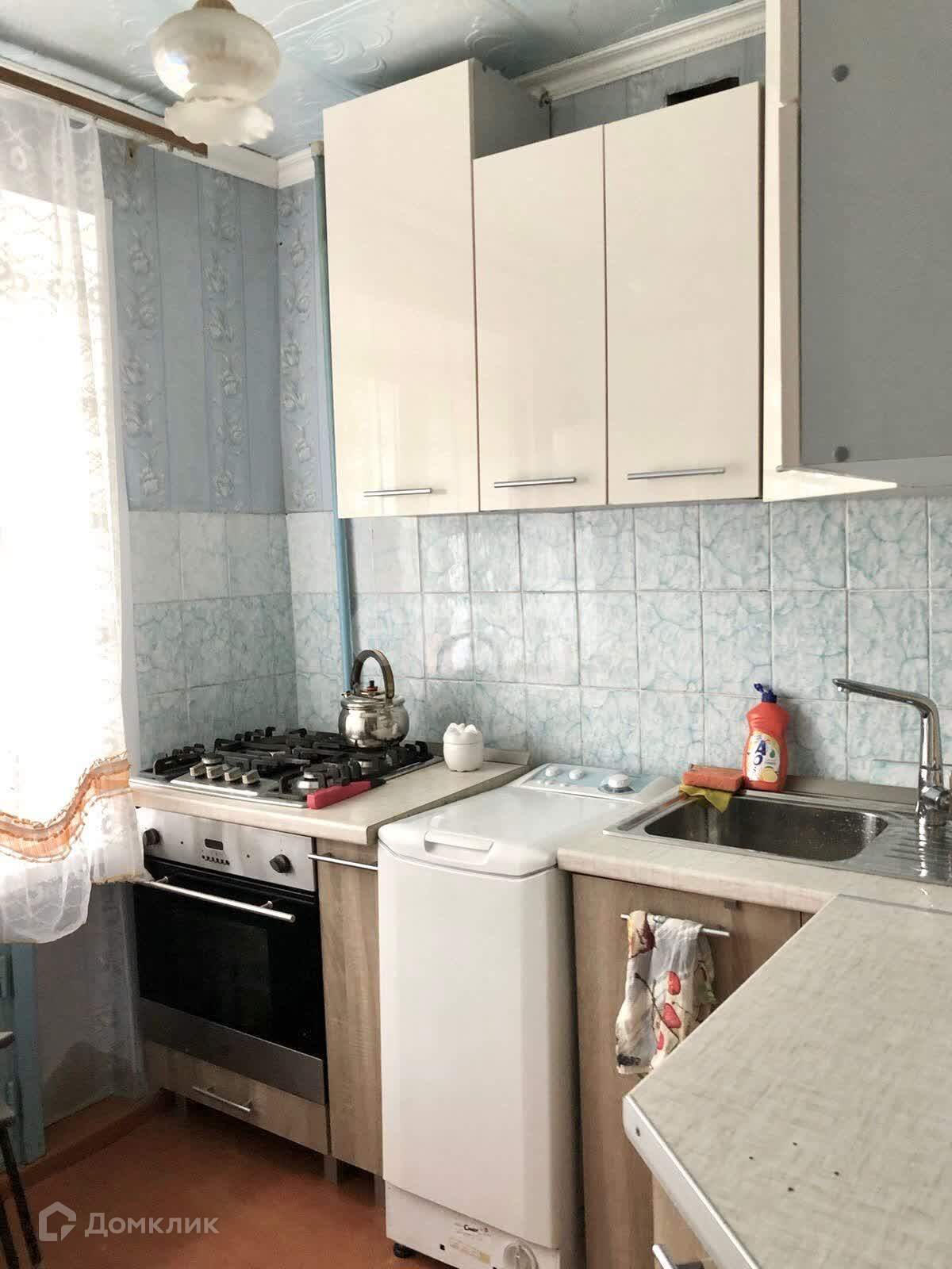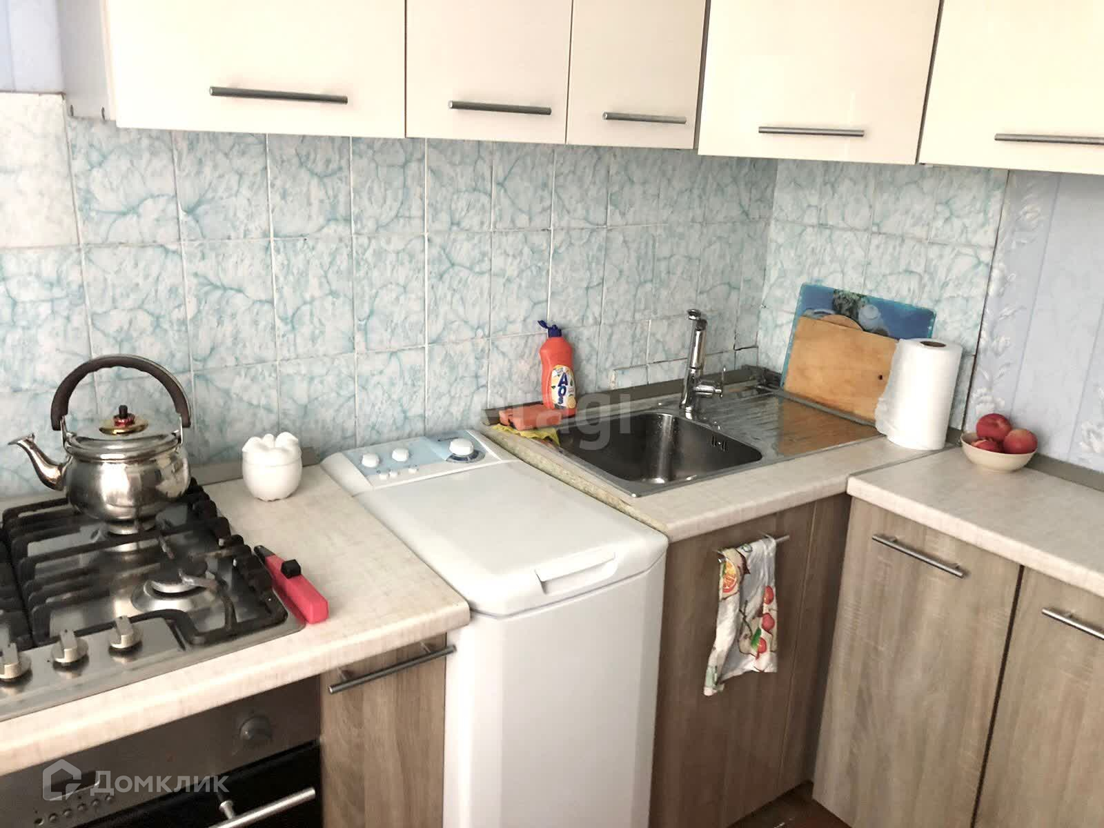 В подарок остается кухонный гарнитур, стиральная машина, холодильник, встроенные электрический духовой шкаф и газовая варочная панель.