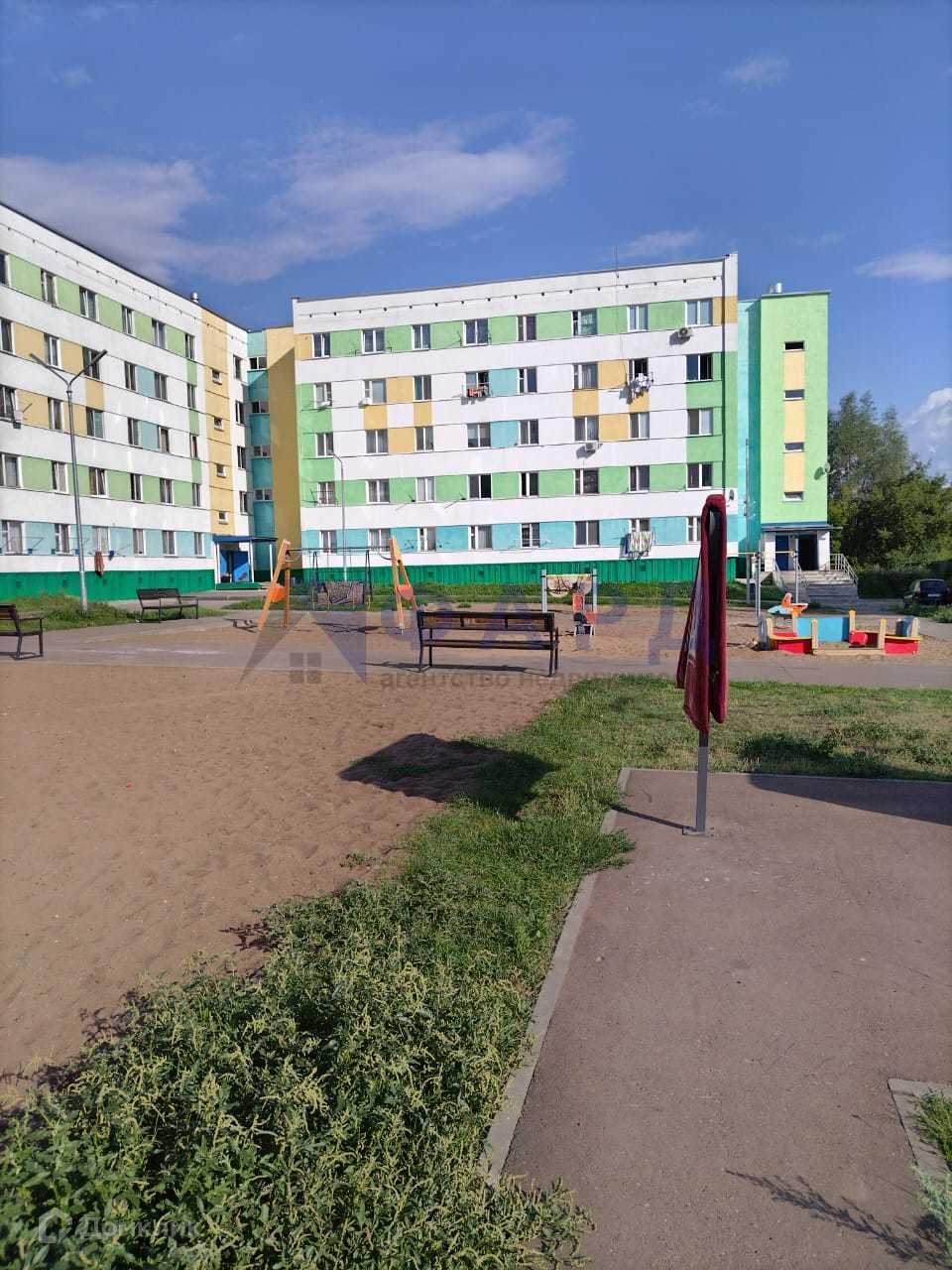 Во дворе большая, просторная детская площадка.