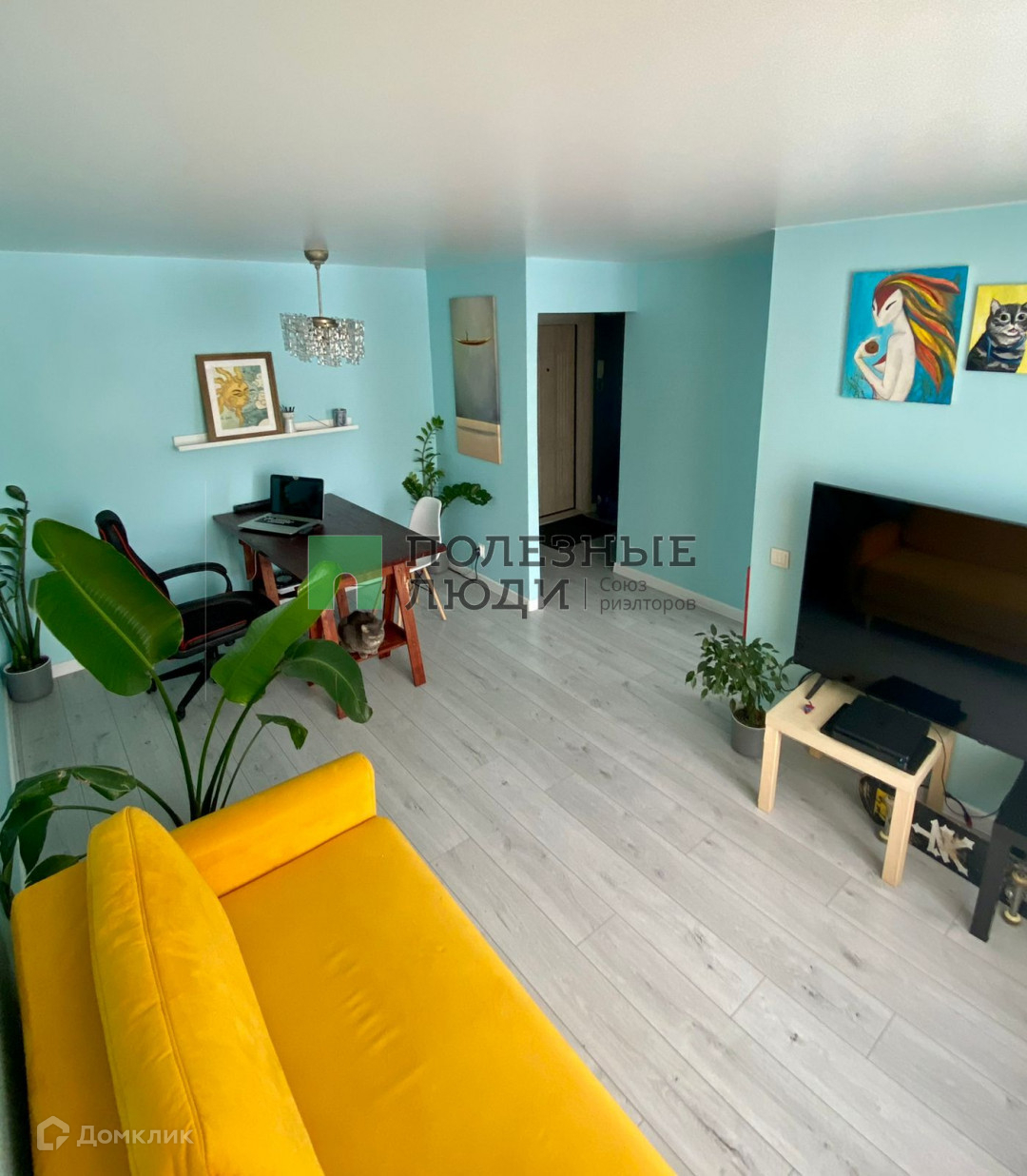 Квартира в свежей оригинальной упаковке с веселым нравом, о чем говорят яркие, сочные природные цвета: голубой, насыщенный желтый, даже успокаивающий зеленый. Всё это великолепие разместилось на просторах 43.2 м2 на 3-м этаже, 5-ти этажного дома, построенного на совесть, во времена когда это слово ещё что то значило!
