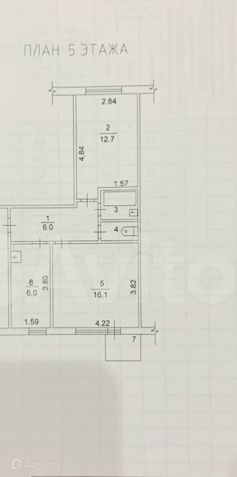 Общая площадь 44.2 м2