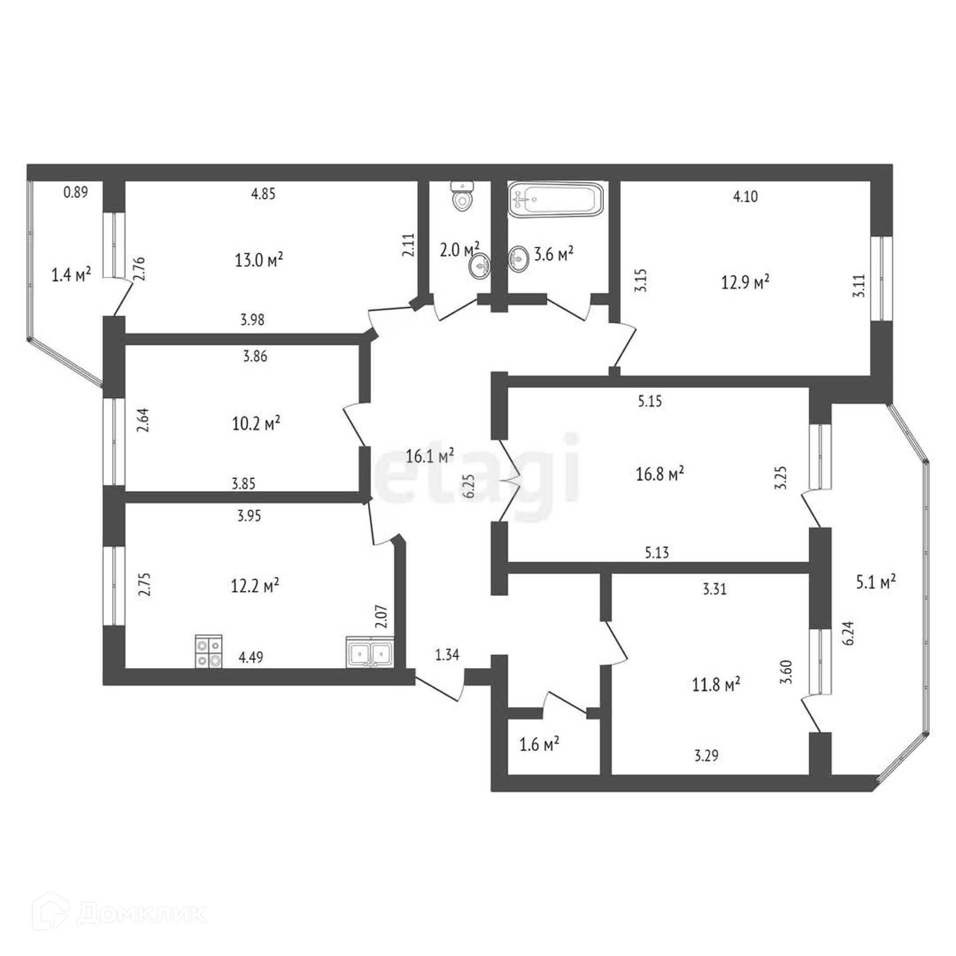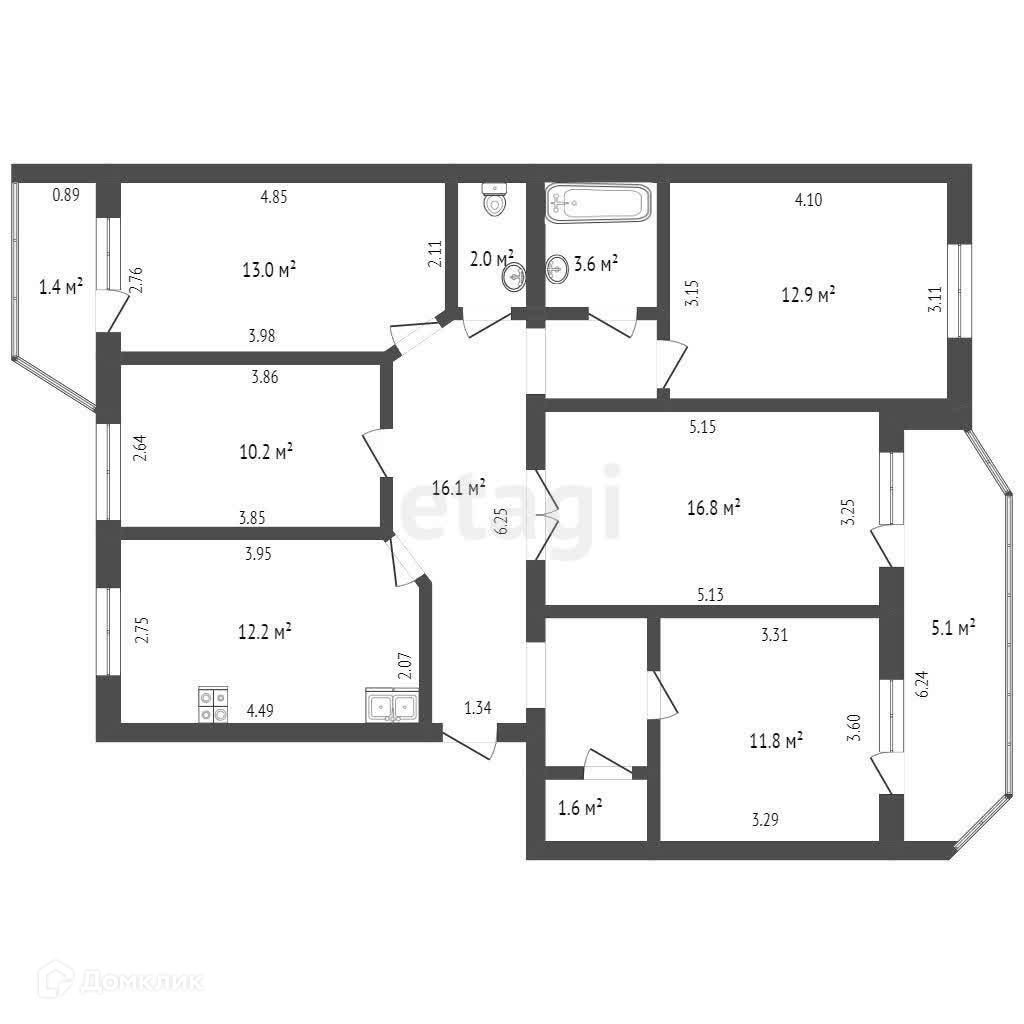 5-комнатная квартира, 100.2 м2, этаж 7 / 10, на продажу в Набережных Челнах, улица Аделя Кутуя, 5