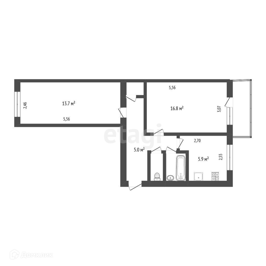 2-комнатная квартира, 44.3 м2, этаж 4 / 5, на продажу в Набережных Челнах, улица Александра Грина, 14