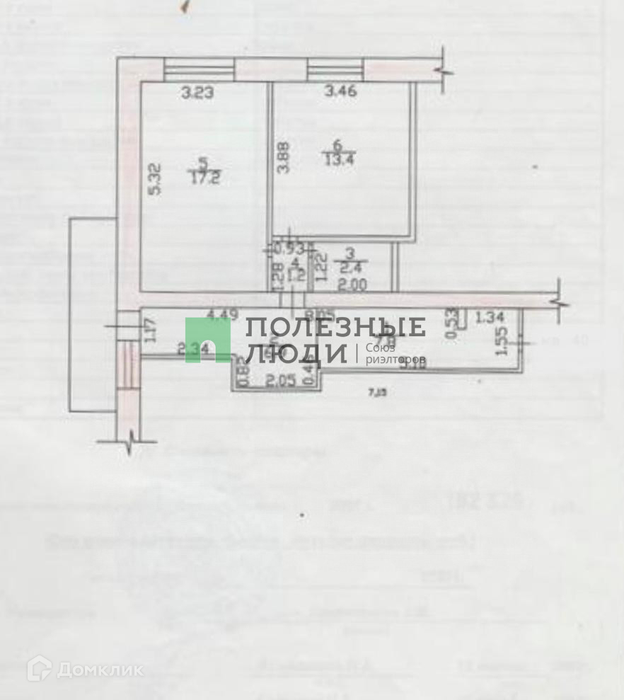 общая площадь 48,9 кв м, из которых: зал - 17, 2 кв м, комната - 13,4 кв м, кухня - 7 кв м
