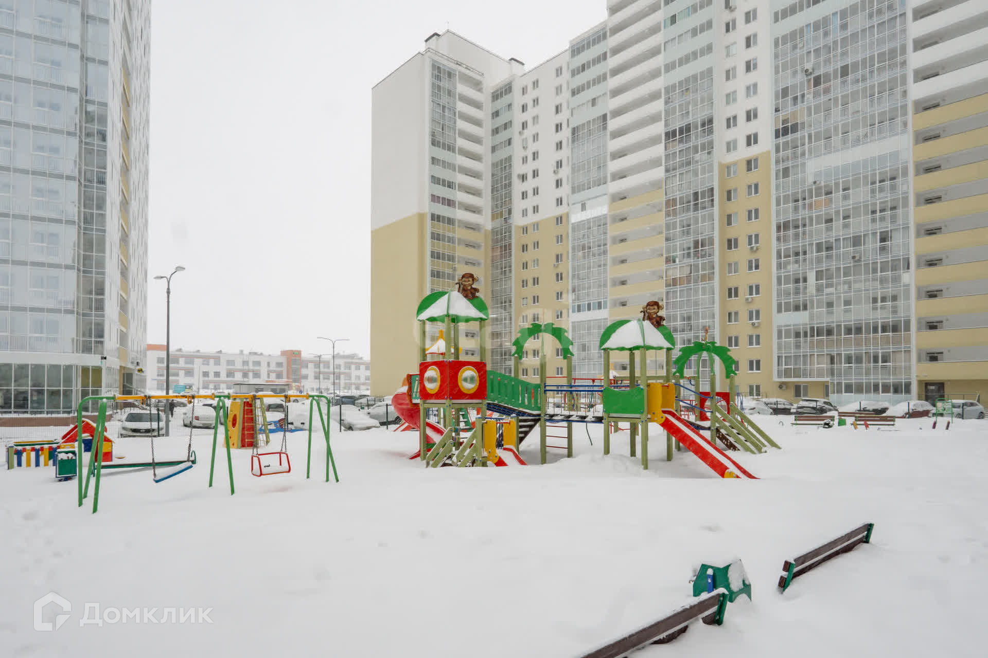 Благоустроенный современный двор, детская площадка.