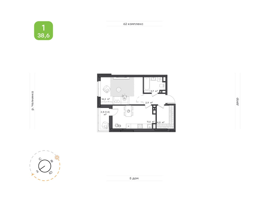 . Удобная планировка, новый жилой комплекс