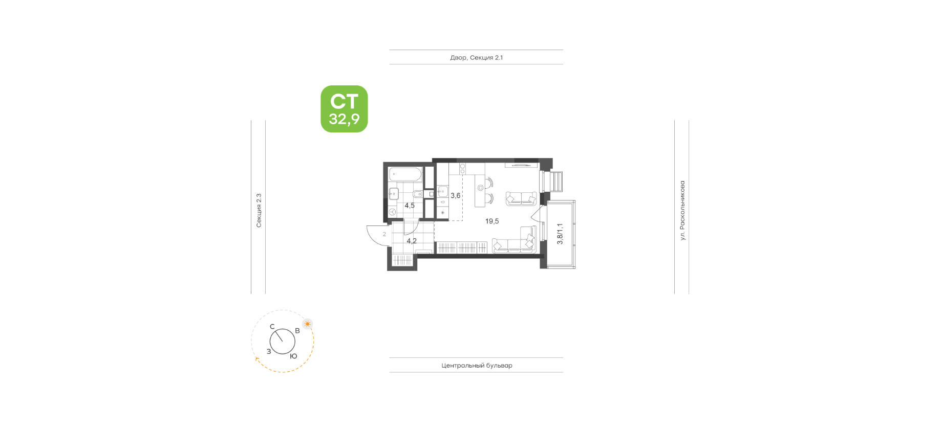 Общая площадь 31 м2