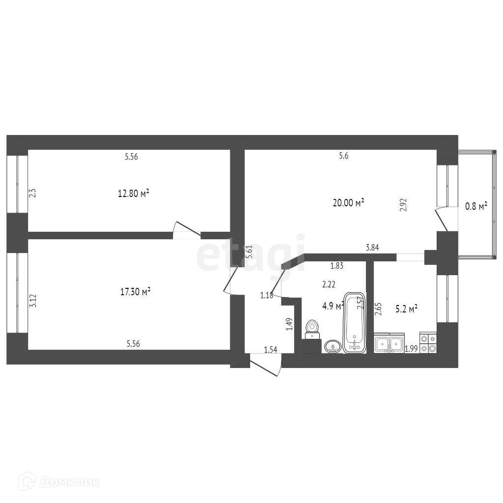 Балкон, лоджия 1 балкон