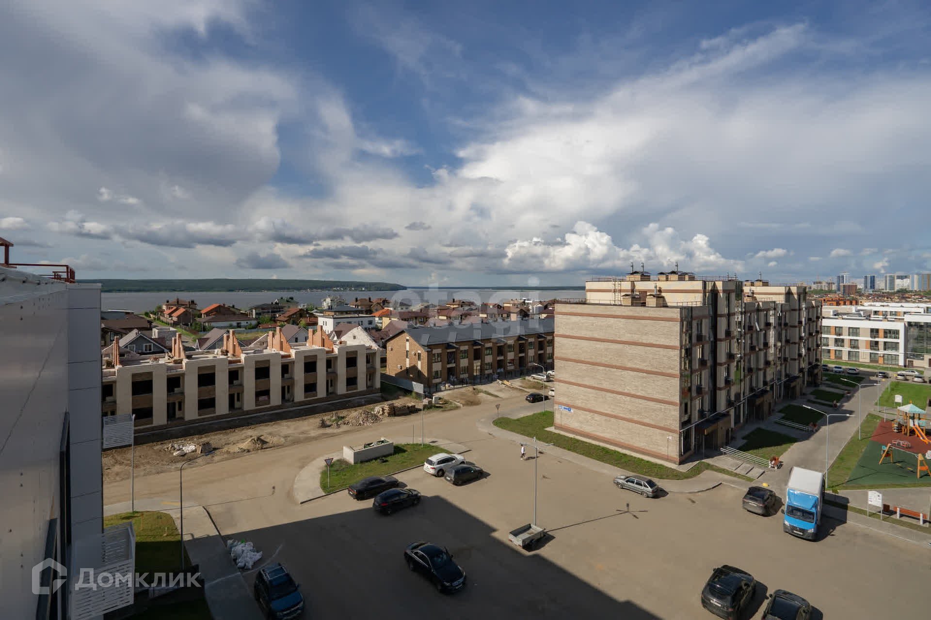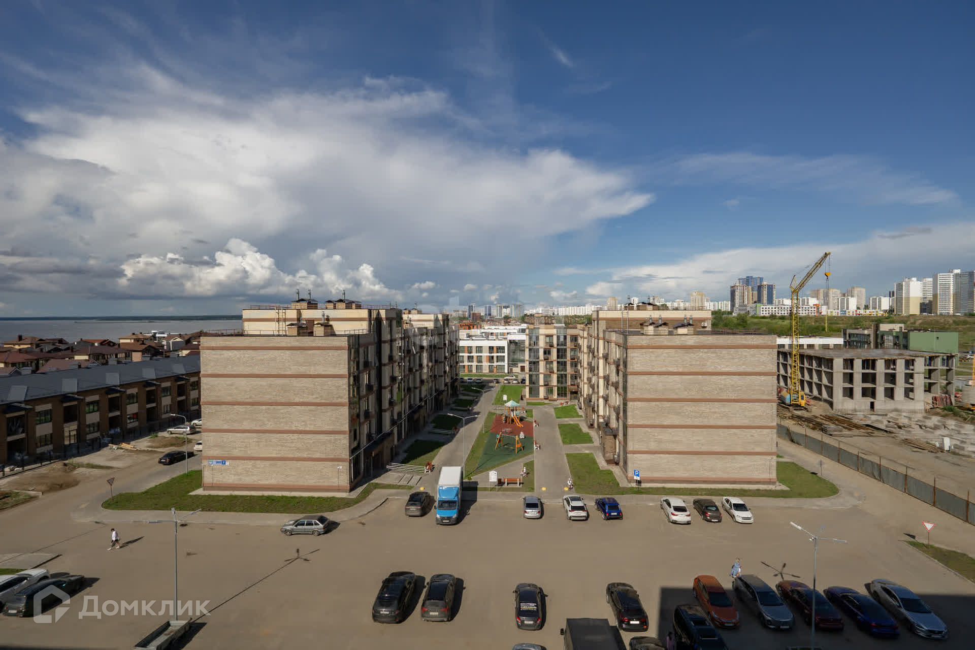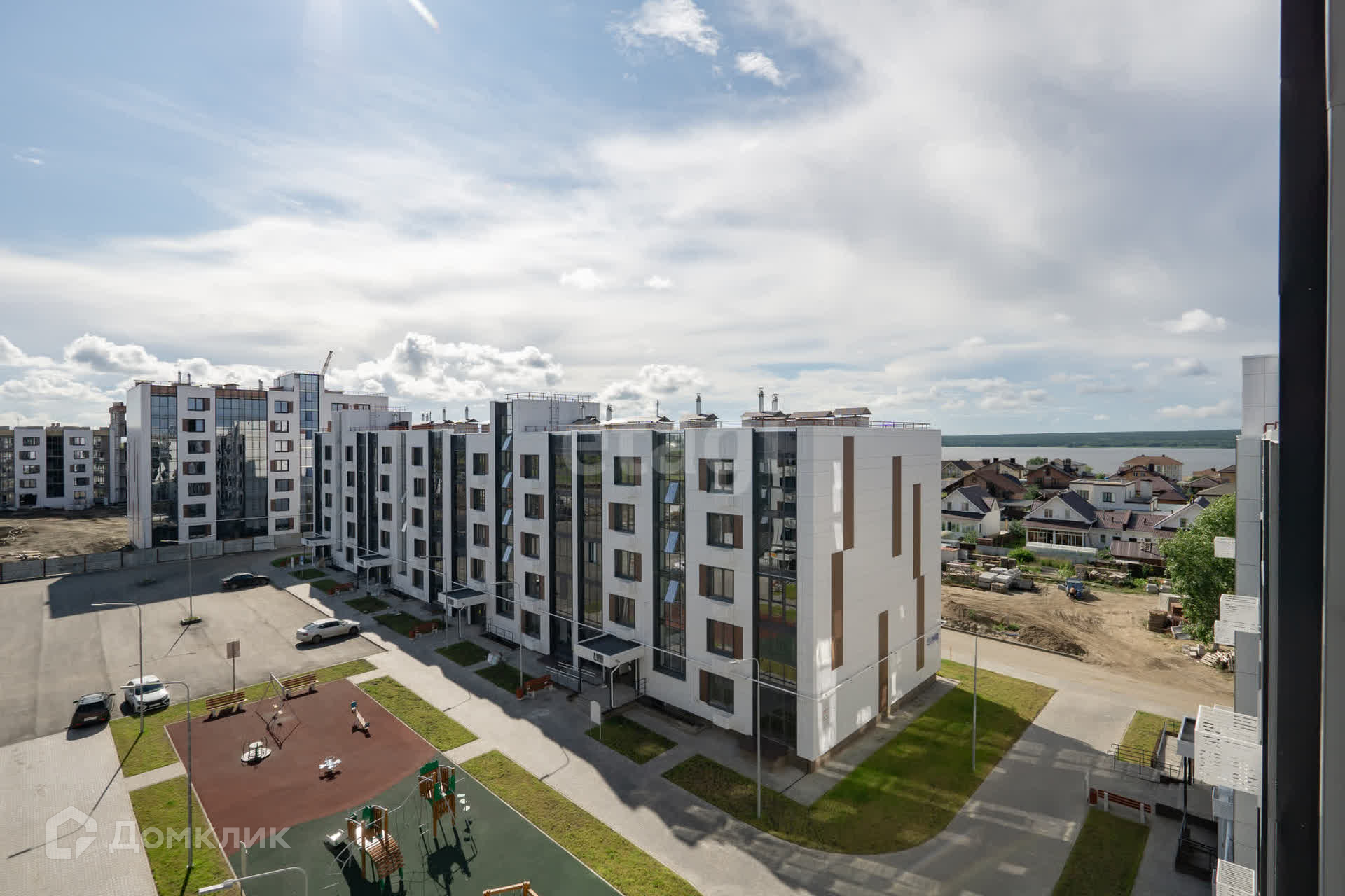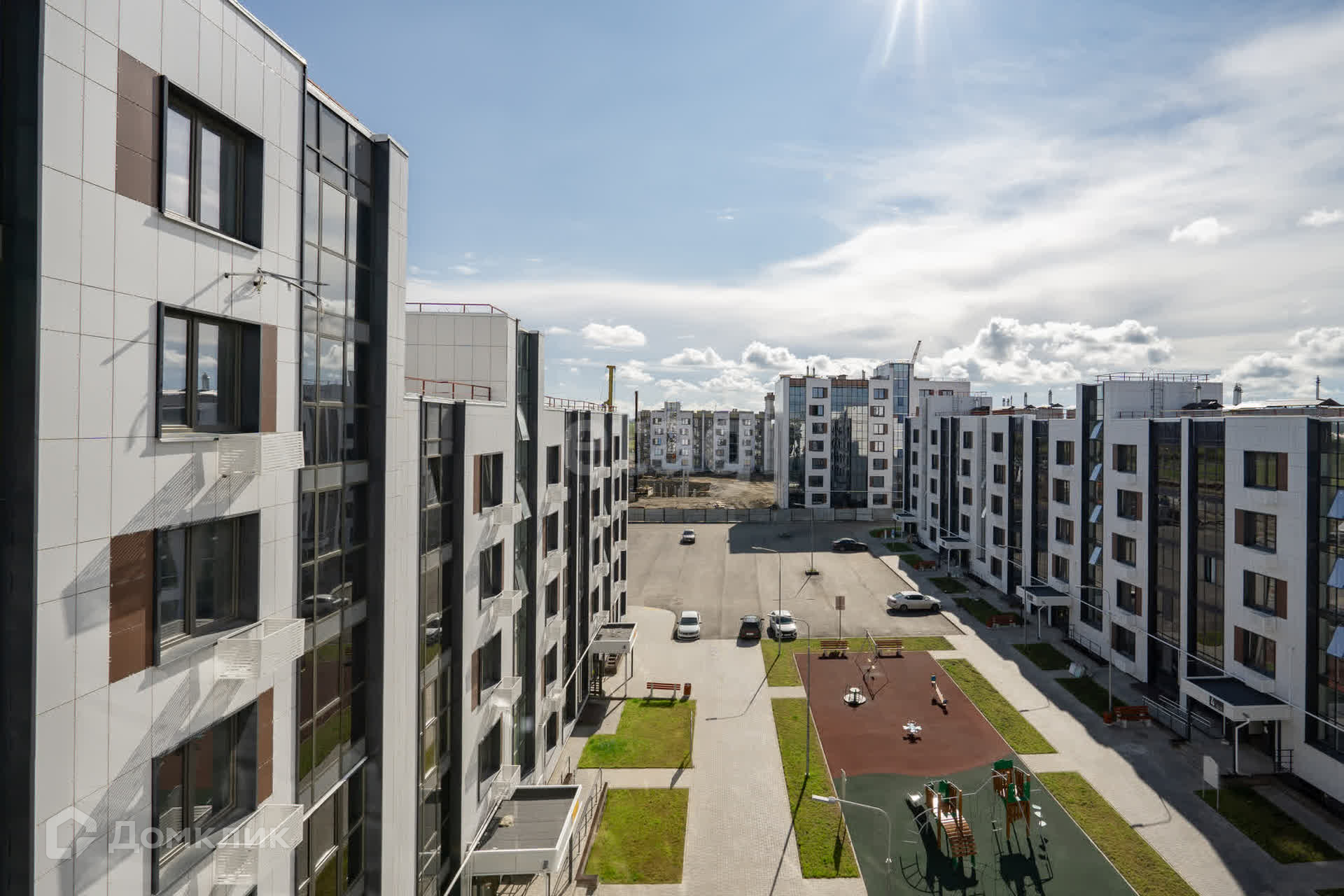 Во дворе проводится благоустройство, установлена детская игровая площадка, большая парковка с обеих сторон дома. Локация дома в спокойном районе без шумных проспектов, не смотря на то, что располагается в городе. Район активно развивается и уже открыты пункты выдачи товаров, продуктовые магазины, пекарни, кофейня.