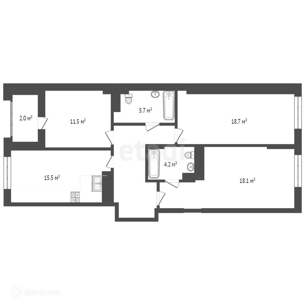 3-комнатная квартира, 88.4 м2, этаж 6 / 7, на продажу в Набережных Челнах, улица Николая Иванцова, 9