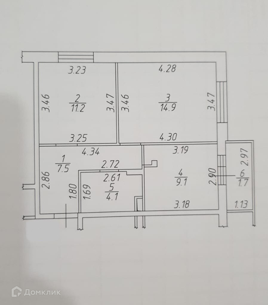 Жилая площадь 26.1 м2