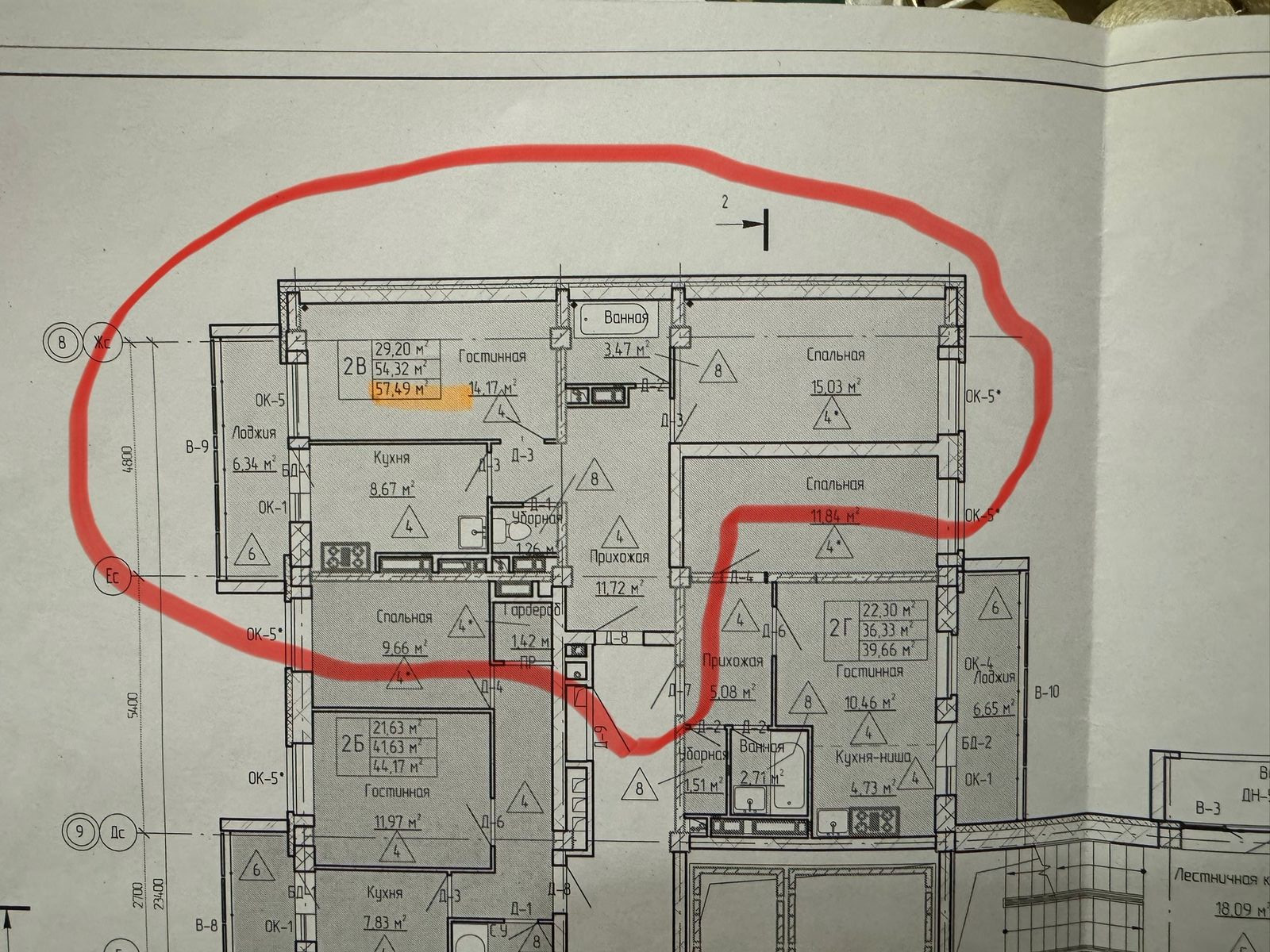 Общая площадь 54.5 м2