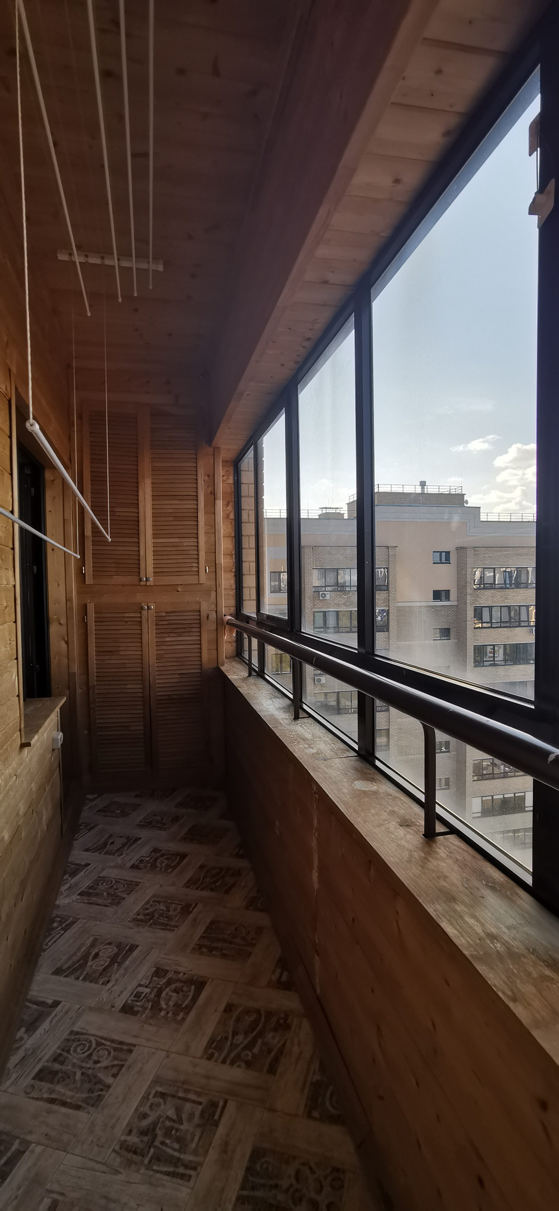 Квартира очень теплая. Установлены счетчики на воду, электричество, газ, есть домофон. Хорошая входная дверь. Санузел раздельный. В квартире остаются: кухонный гарнитур, шкаф для хранения в тамбуре. Балкон 6-метровый, обшит вагонкой, застекленный, пол утеплен.