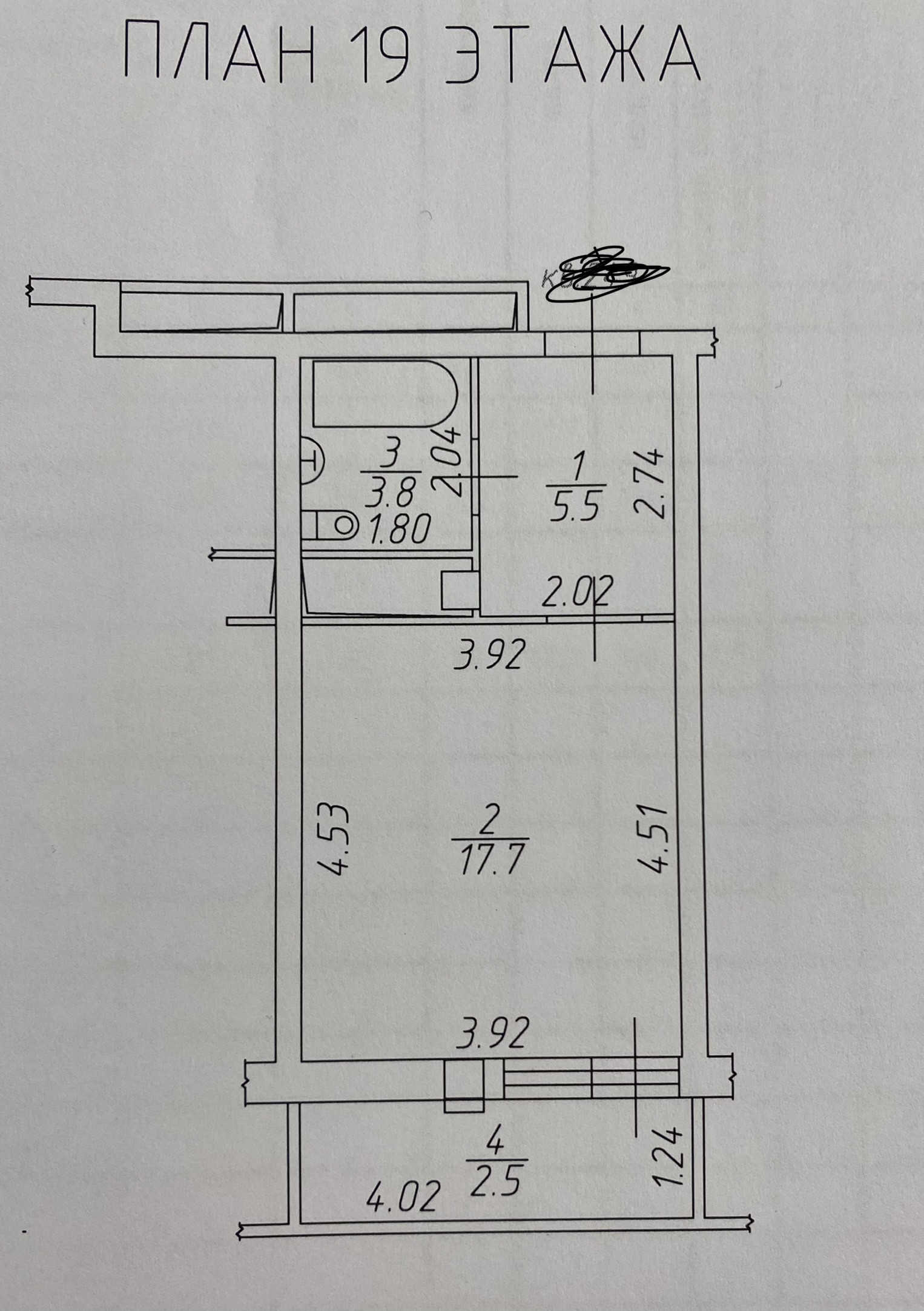 Жилая площадь 17.7 м2