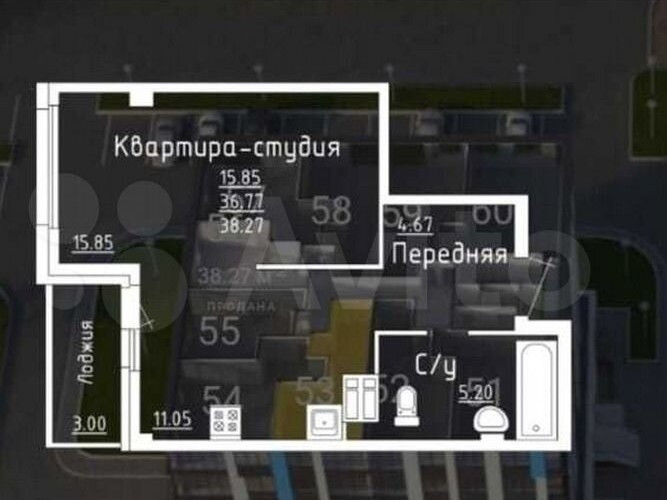 Общая площадь 37 м2