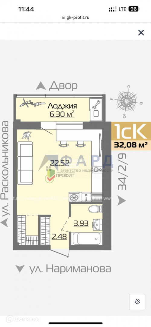 Общая площадь 32 м2
