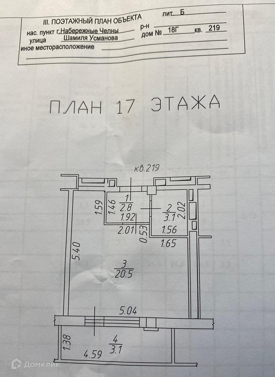Квартира студия, 29.5 м2, этаж 17 / 21, на продажу в Набережных Челнах, улица Шамиля Усманова, 18Г