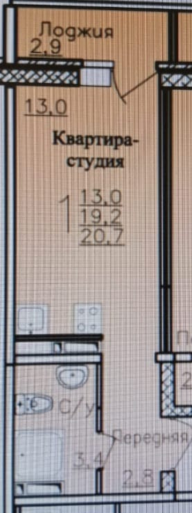 Общая площадь 20.7 м2