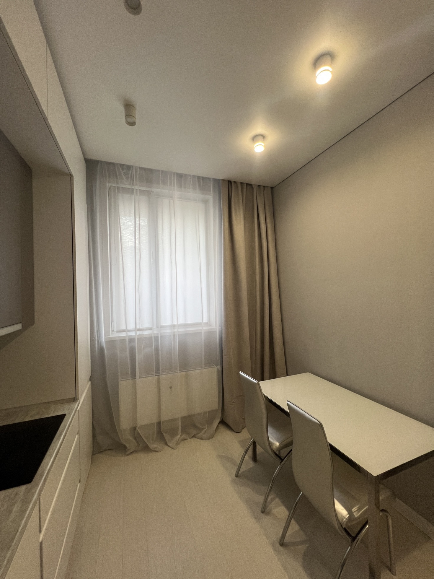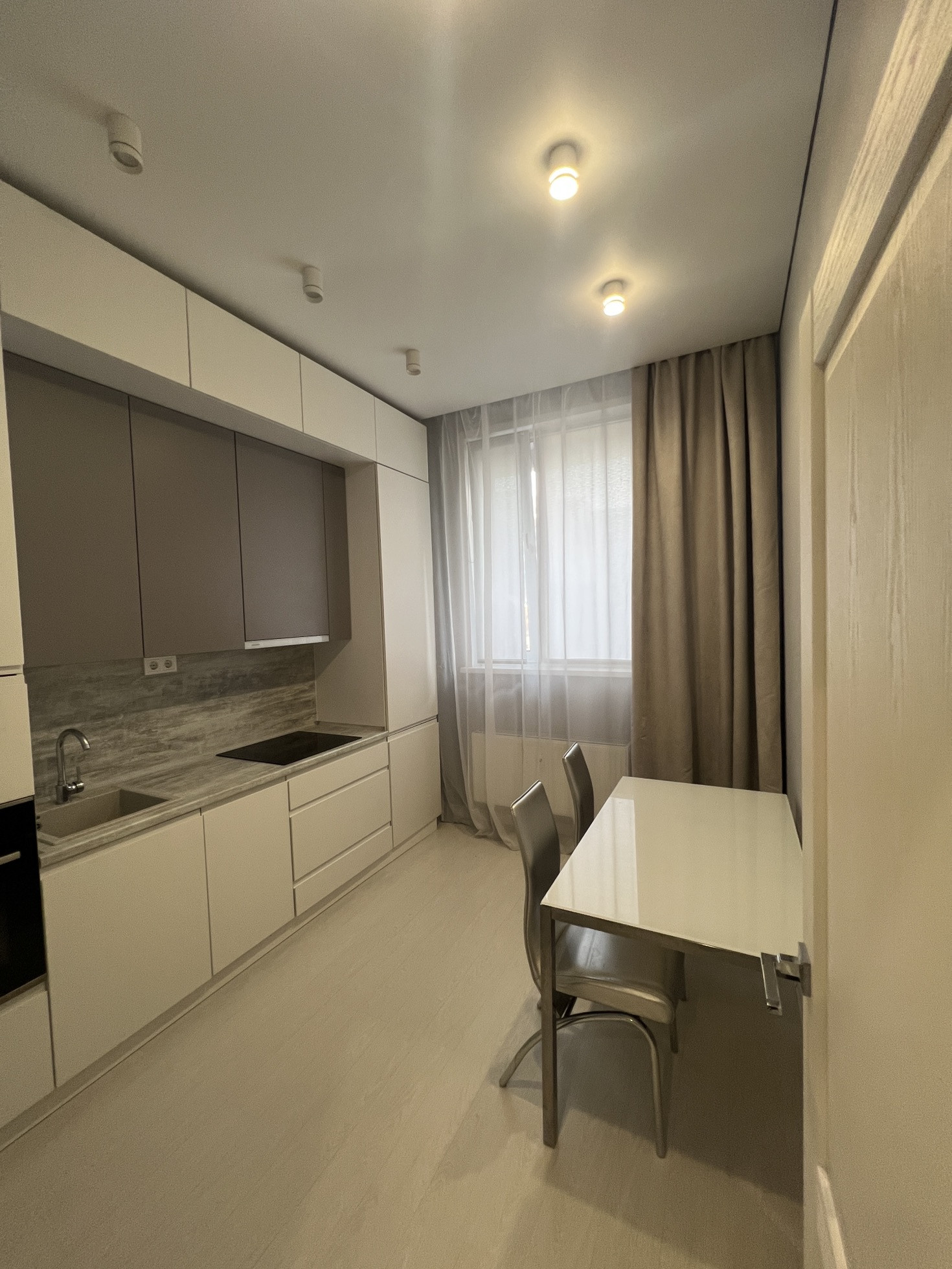 Продам квартиру на 1 этаже 7 этажного подъезда, потолки 3 метра,окна выходят во двор, все что есть на фото остается, кухонный гарнитур, стол, техника вся кроме стиральной машины, два шкафа , двухспальная кровать, кондиционер. В доме газовая котельная на крыше, горячая вода круглый год, на запас установлен бойлер в сан узел, теплый пол в сан.узле, по всей квартире уложен  винил, полы теплые даже зимой, стены покрашенны- можно перекрасить в любой нужный цвет. Техника на кухне: холодильник LG, посудомойка bosch, индукционная варочная поверхность Electrolux, духовка bosch.