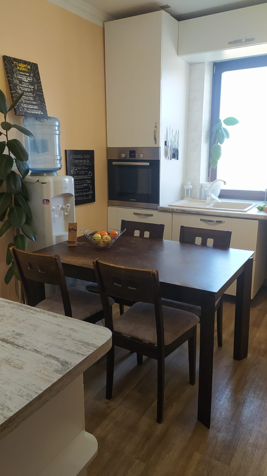 Оставляют в дар кухонный гарнитур, гардеробная, бойлер, кондиционер, остальное по договоренности.