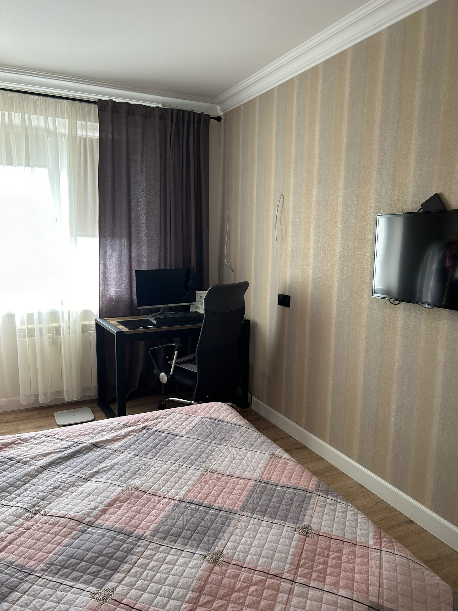 Продается трехкомнатная квартира ( переделанная в евро двушку). Зал и кухня совмещены, перепланировка узаконена.