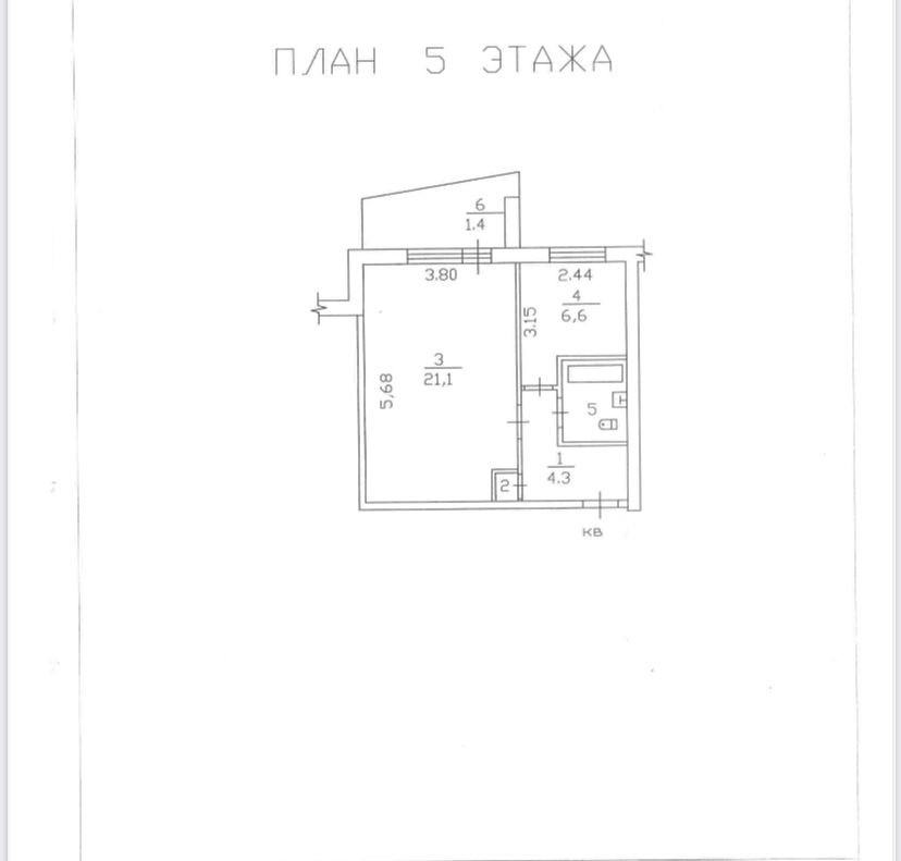 Жилая площадь 21.1 м2