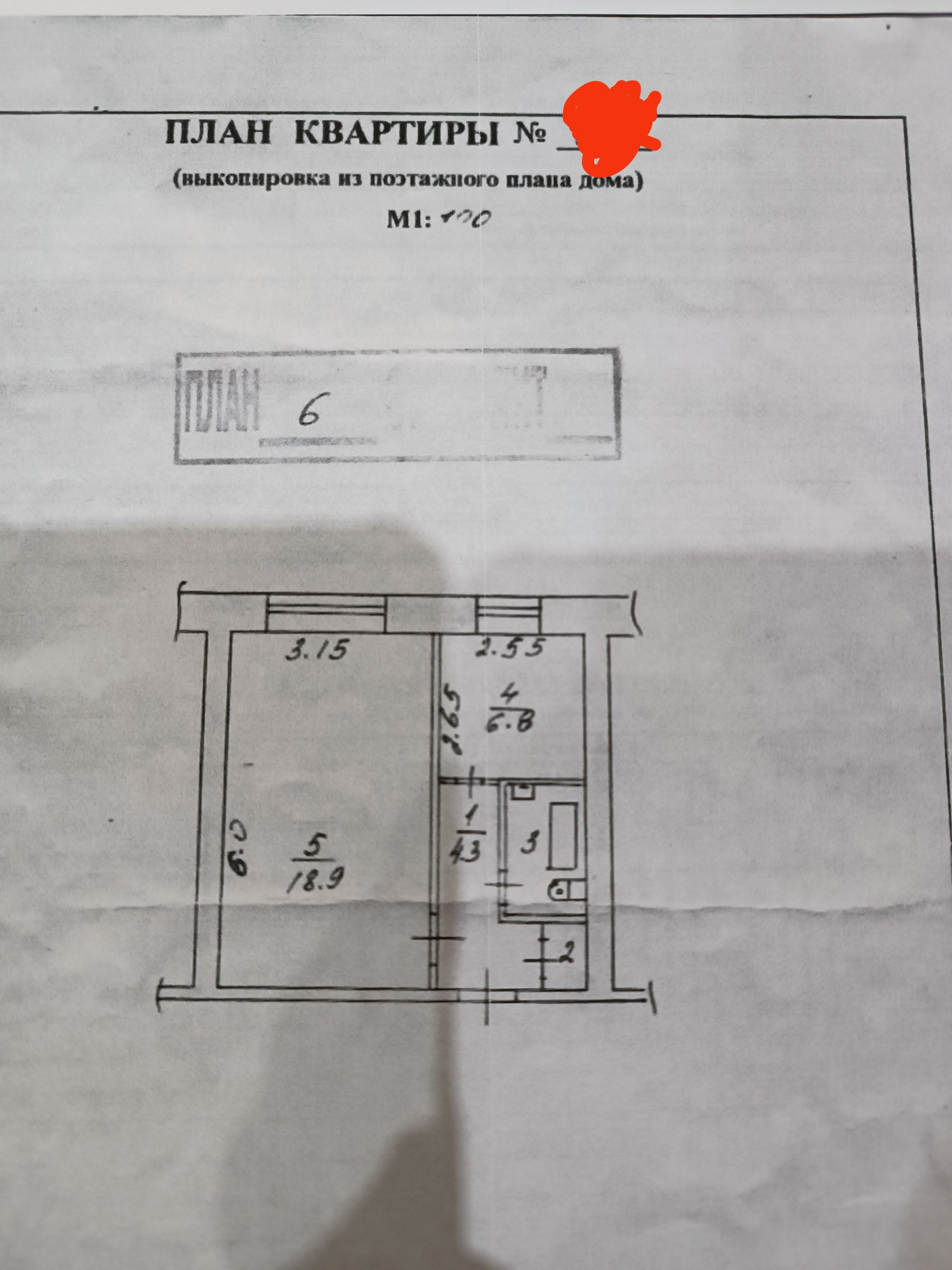 Жилая площадь 18.9 м2