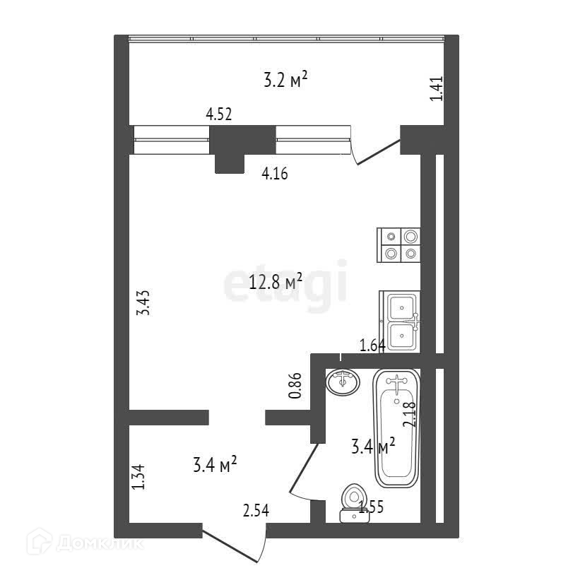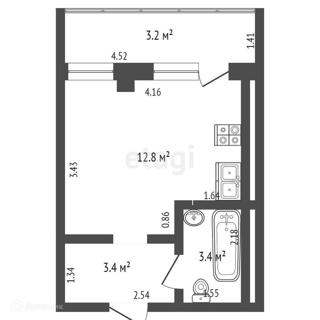 Общая площадь 19.6 м2