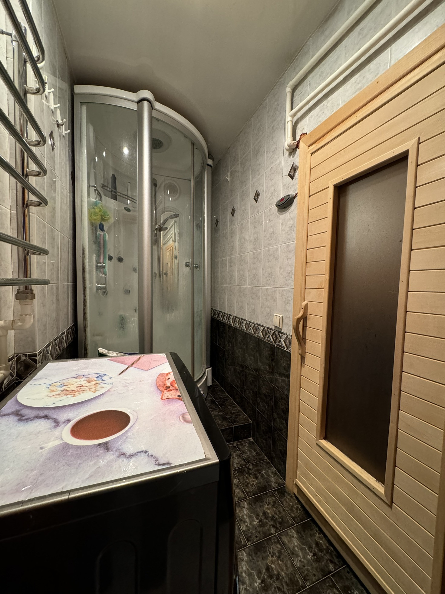 Квартира с косметическим ремонтом, что позволит новым владельцам либо сразу заселиться либо сделать ремонт на свой вкус.. Также стоит отметить, что в квартире более одного санузла, что является большим плюсом для большой семьи, а также имеется прекрасное место релакса сауна.