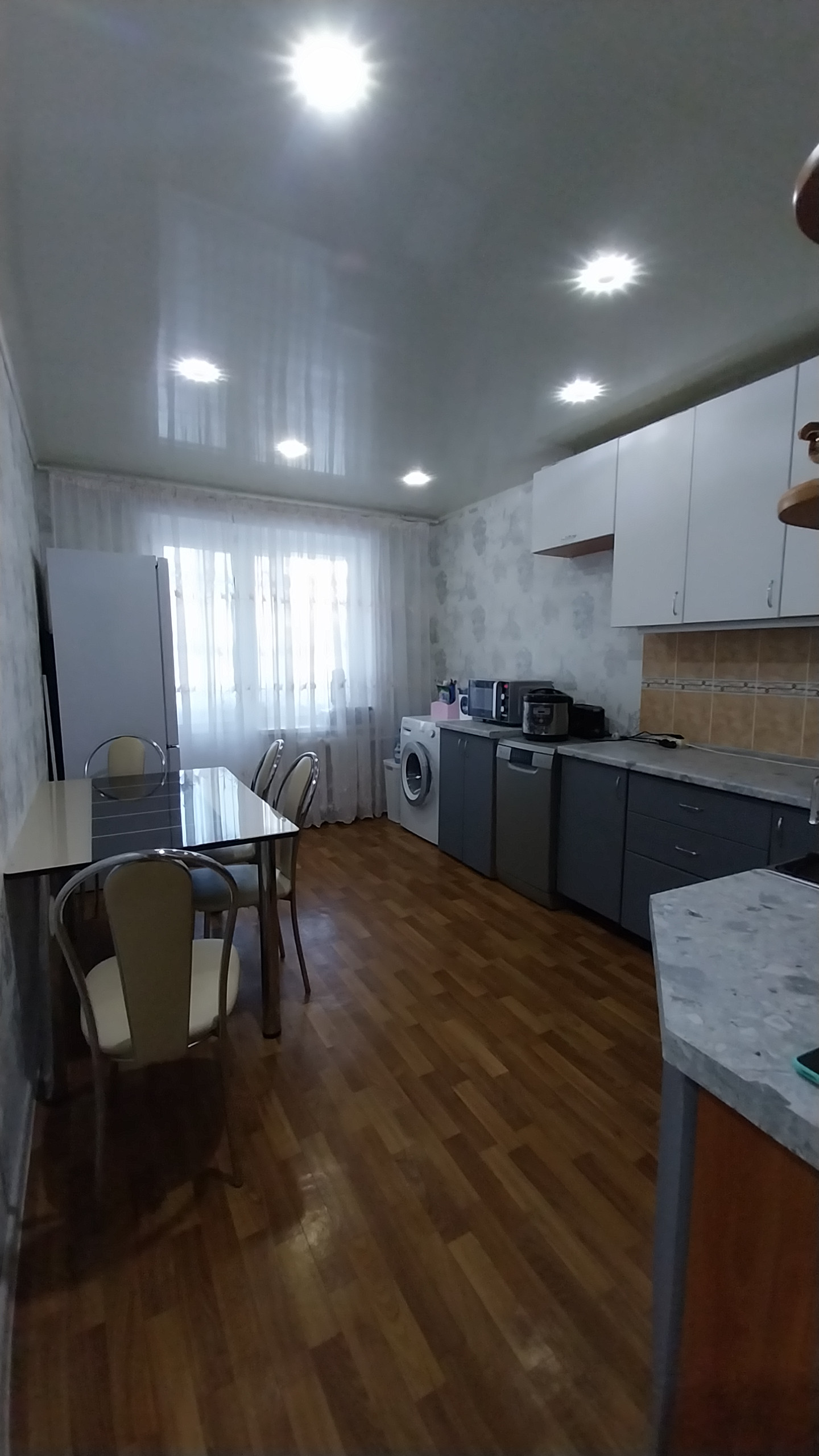 В подарок остается кухонный гарнитур с техникой (холодильник, стиральная машина, микроволновка, посудомоечная машина),  встроенный шкаф купе в коридоре.