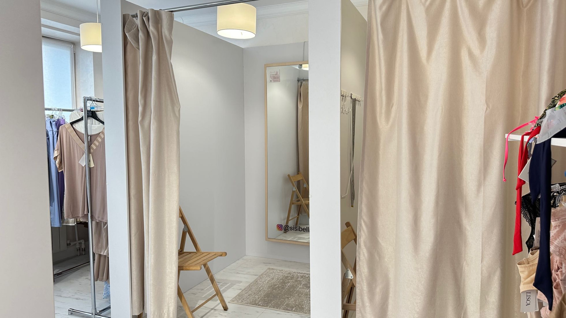 Есть встроенные шкафы, комоды, ресепшн, большие зеркала, примерочные, миникухня, санузел. Мебель и оборудование по договоренности.