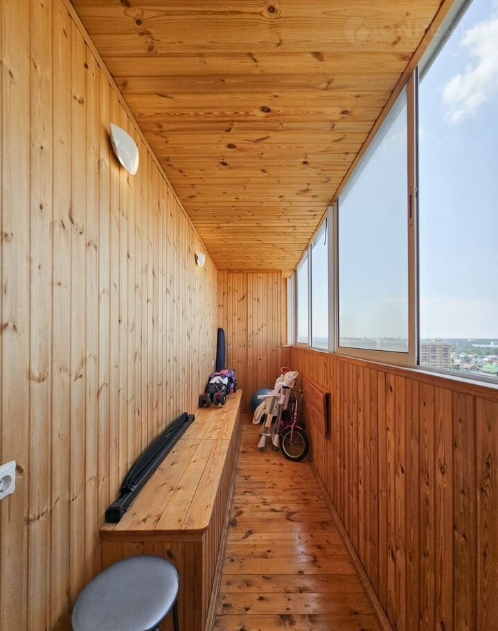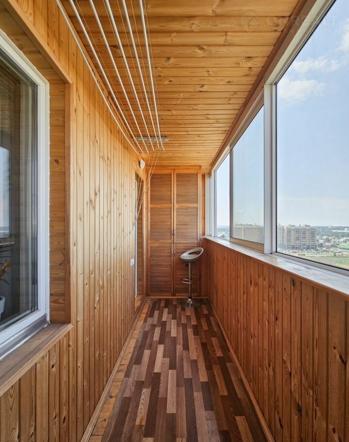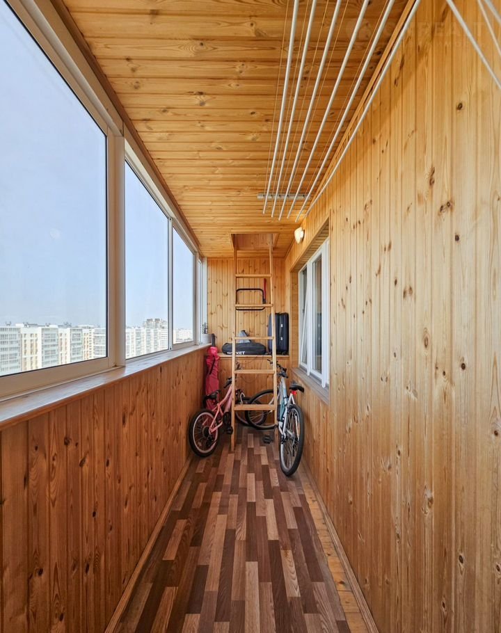 Еcть двухуровнeвый бaлкoн. Оба балконa oбшиты.
