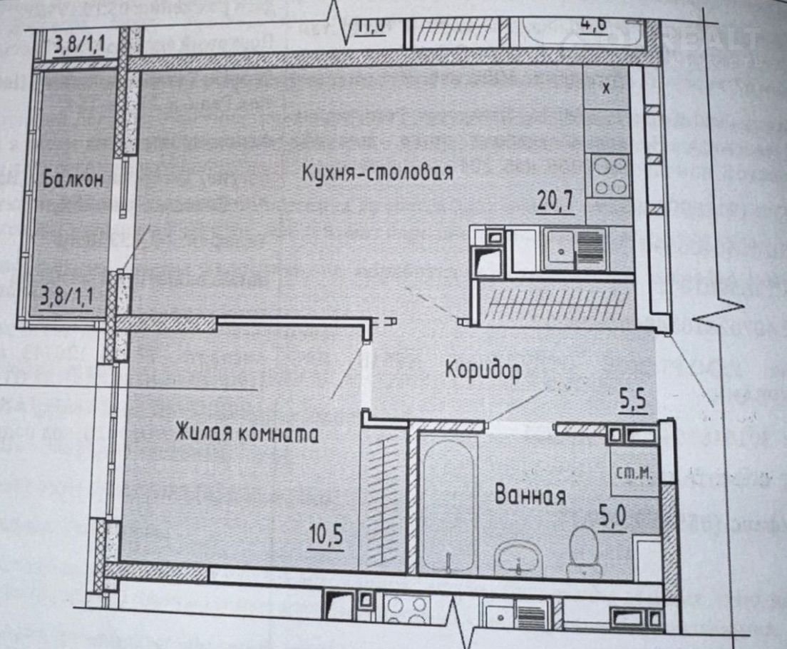 Балкон, лоджия 1 балкон