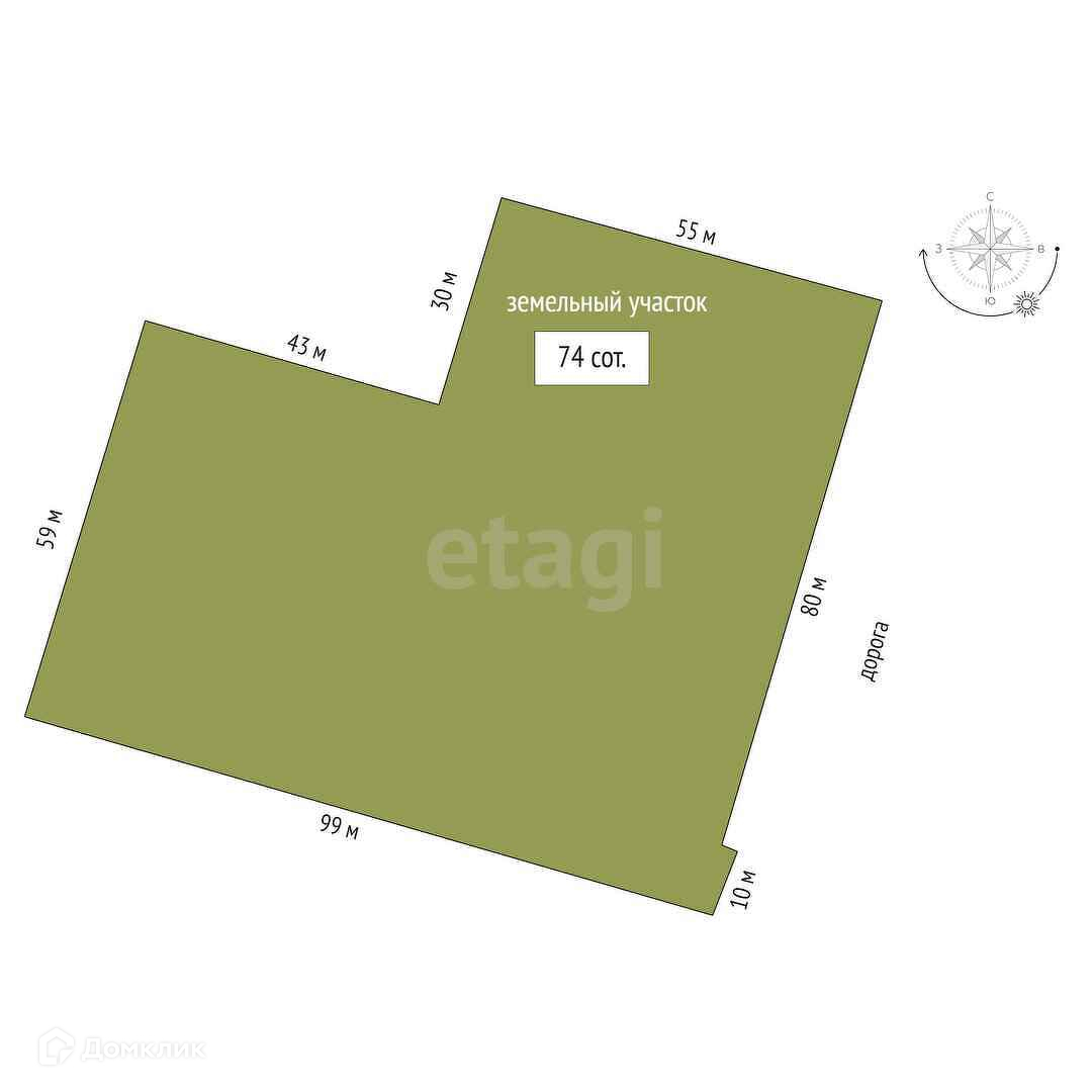 Площадь участка 74.01 сот.