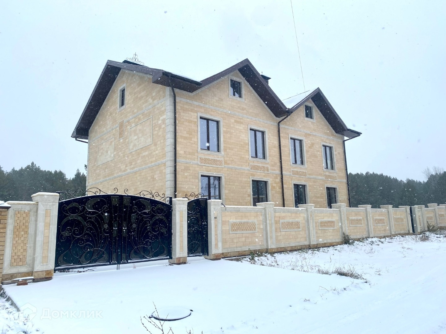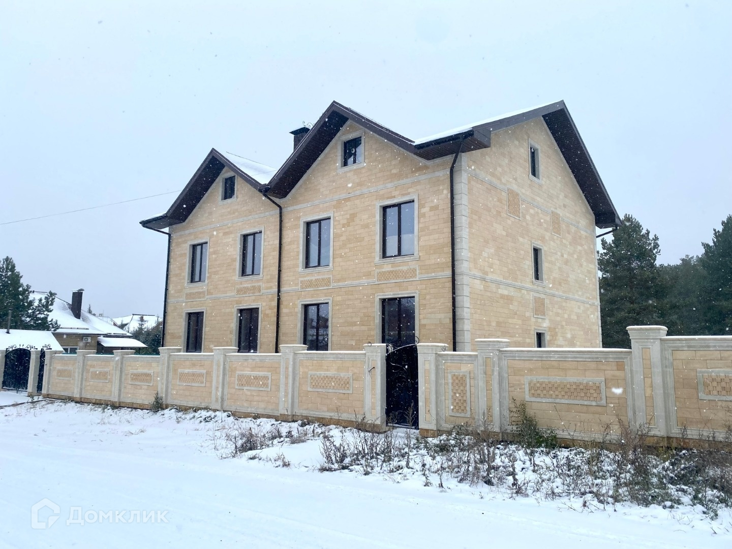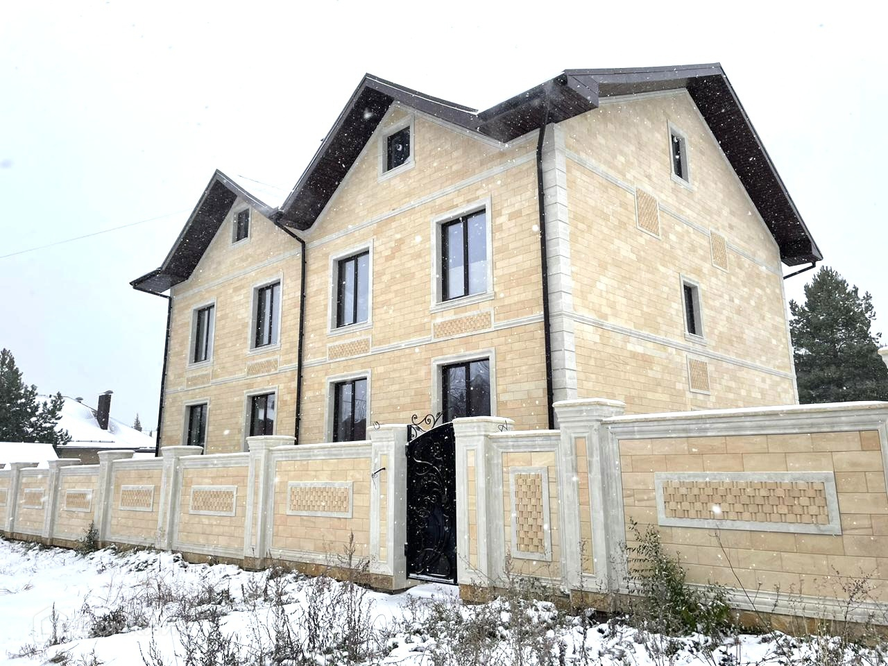 Сделана придомовая часть, фасад облицован дагестанским камнем. Новые ворота, забор так же облицован дагестанским камнем.