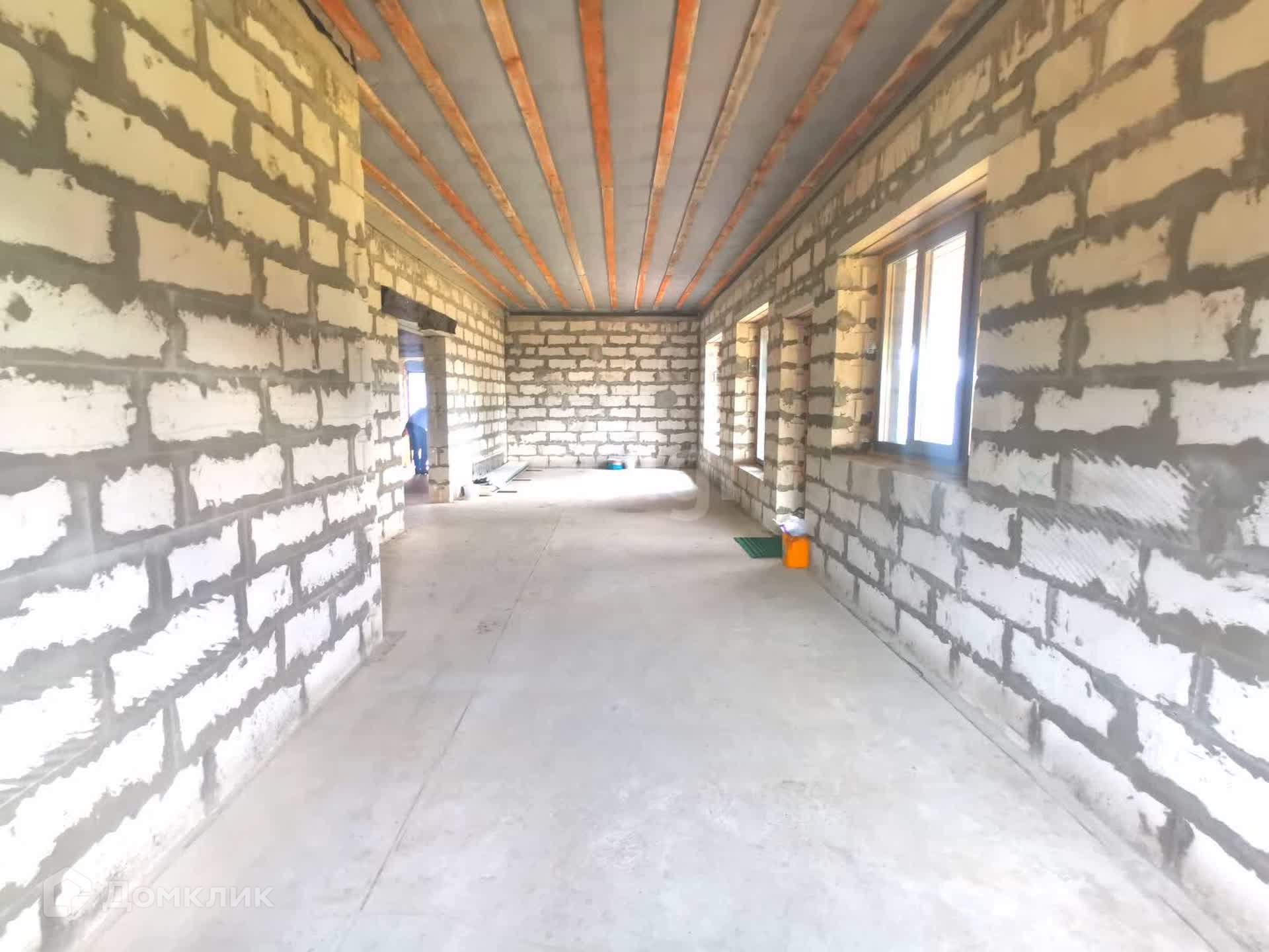Дом возведен на монолитной плите толщиной 300мм. Арматура 12, Стены из газобетонного блока 400 мм.