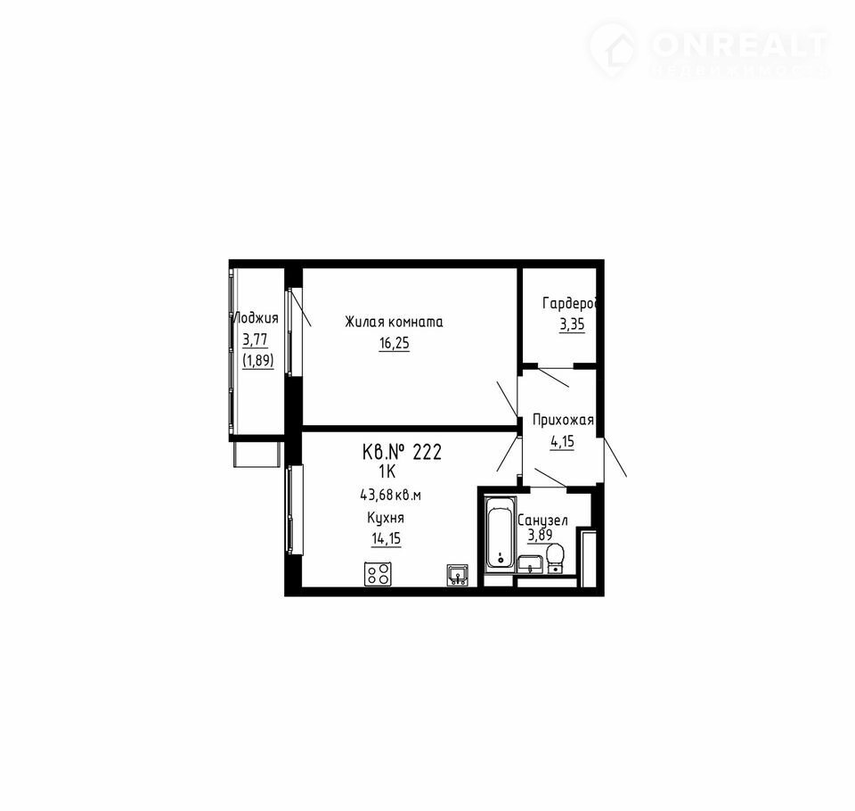 1-комнатная квартира, 43.7 м2, этаж 9 / 12, на продажу в Надеждинском сельском поселении