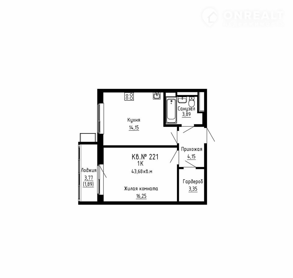 Общая площадь 43.7 м2