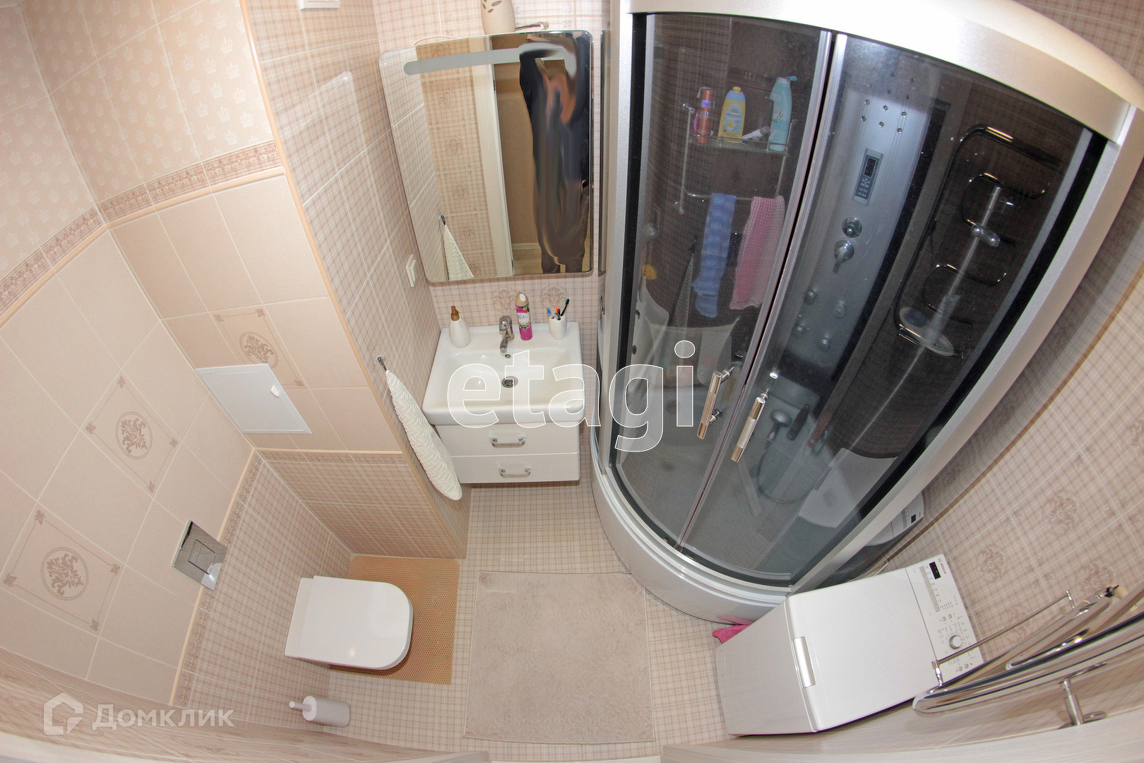 Ванная и туалет совмещен, пол и стены выложены качественной современной кафельной плиткой, установлена инсталляция и душевая кабина.