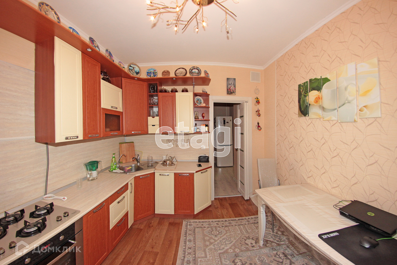 Напольное покрытие ламинат. В кухне линолеум.