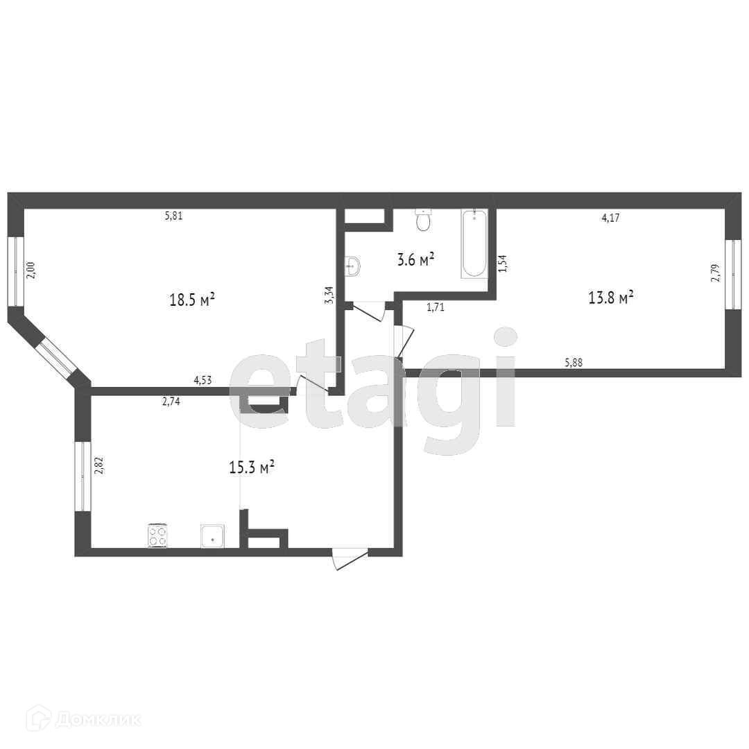 Общая площадь 54.8 м2