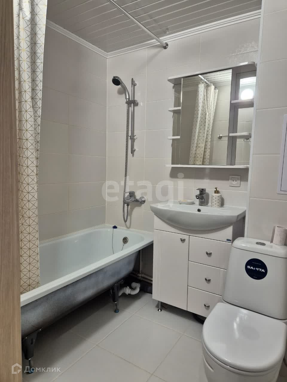 Совмещённый санузел выполнен с использованием кафельной плитки на стенах и полу. Установлены счётчики учёта горячей и холодной воды для вашего удобства. По договоренности остаётся мебель и техника, что позволяет сразу заехать и жить без лишних затрат.