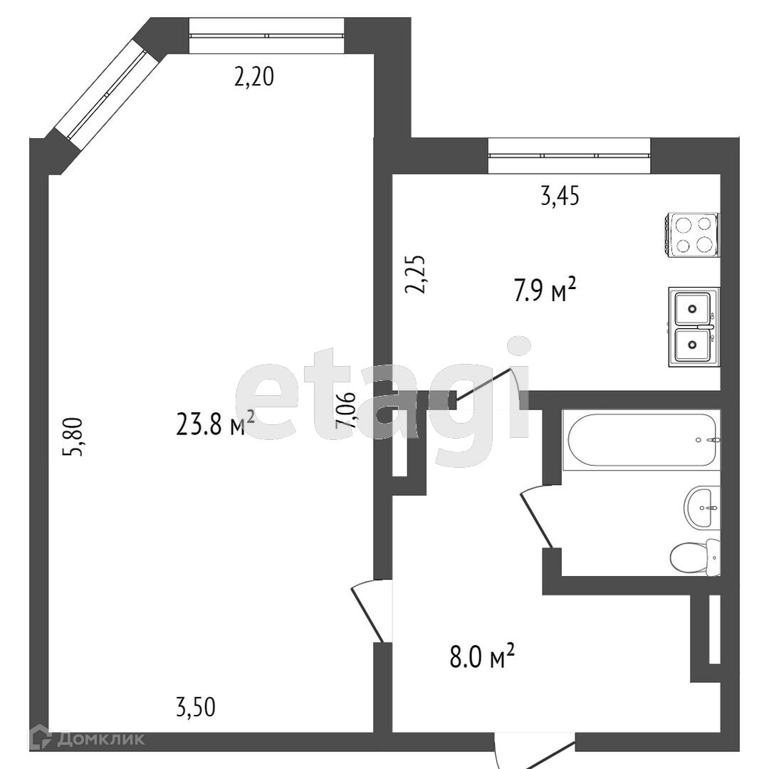 Общая площадь 42.9 м2
