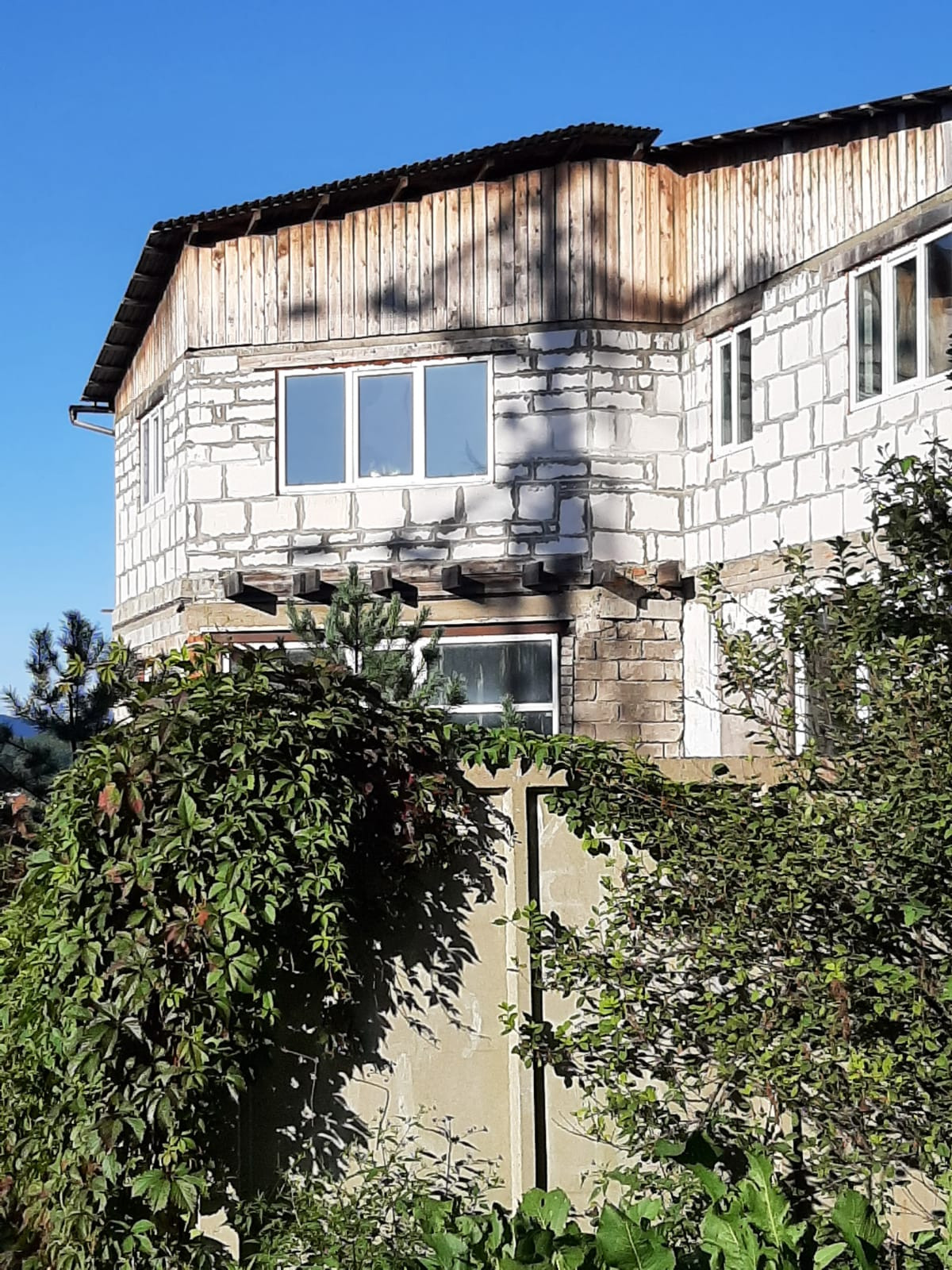 Дом построен из газоблоков, отделка - красный кирпич, толщина стен 30 см